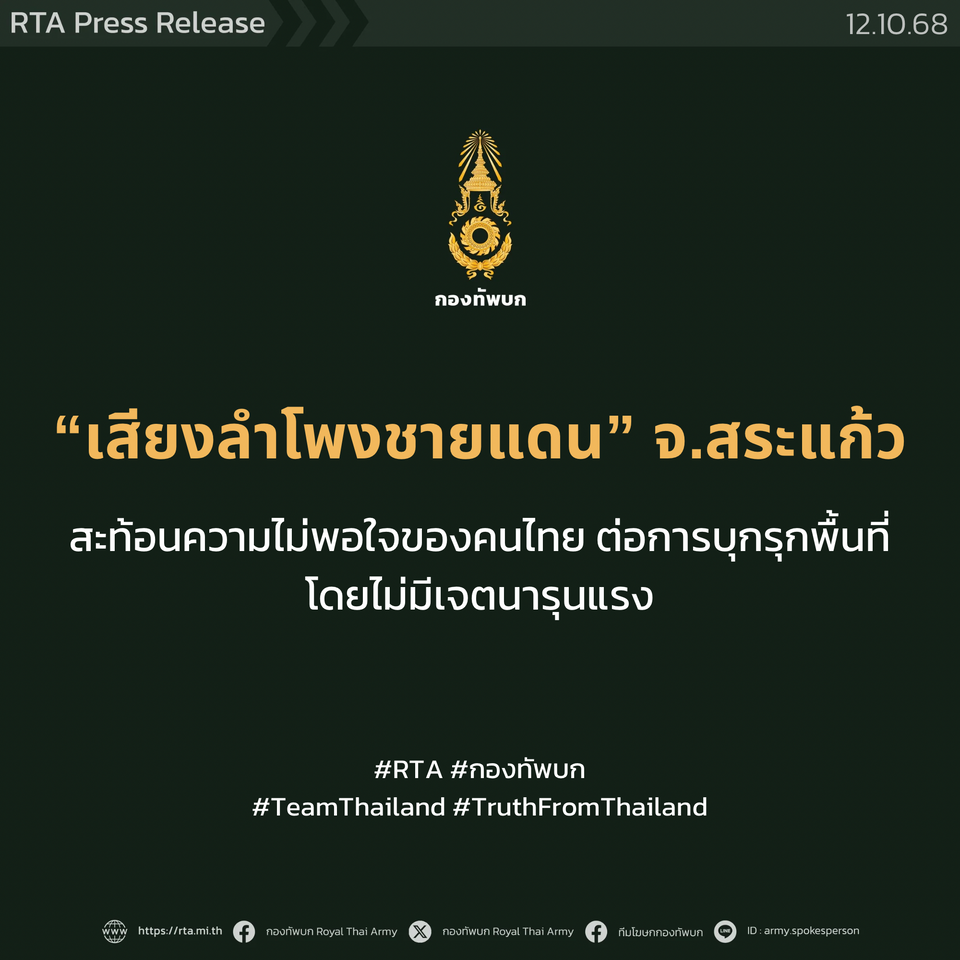 #กองทัพบก #ชายแดนไทยกัมพูชา #เสียงลำโพง #บุกรุกพื้นที่ #ความมั่นคง #ข่าวการเมือง #ข่าวความมั่นคง