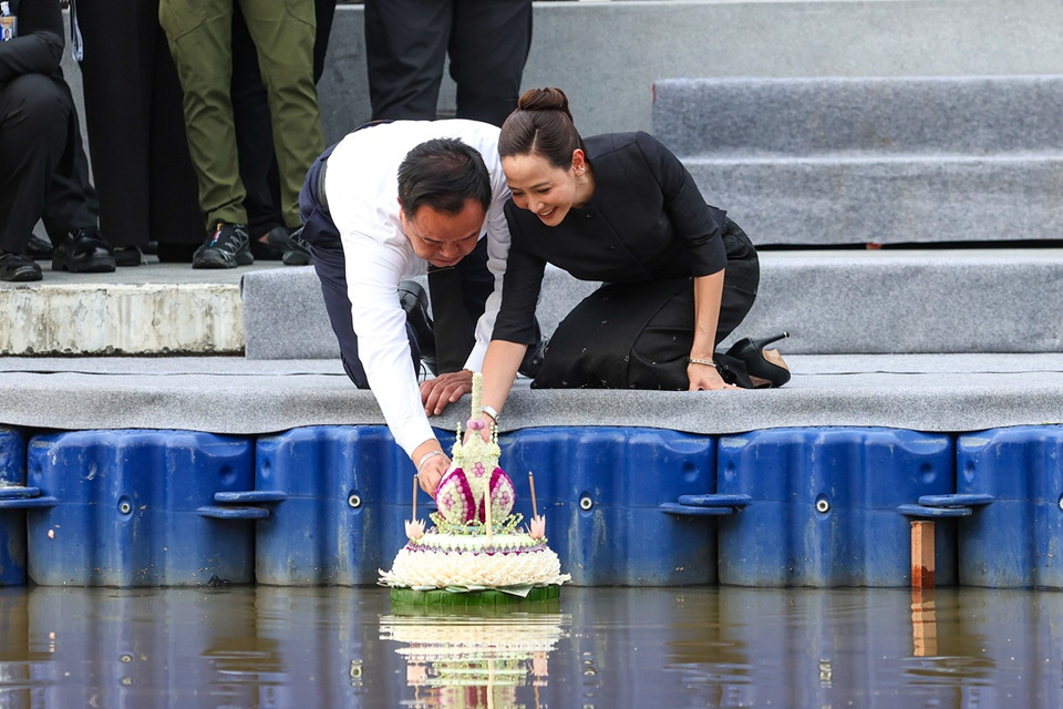 โดยเวลา 17.00 น.นายอนุทิน พร้อมภริยา นำกระทงลอยลงสู่คลองผดุงกรุงเกษม ซึ่งการลอยกระทงปีนี้มีการเน้นย้ำการ ใช้วัสดุจากธรรมชาติเพื่อรักษาสิ่งแวดล้อม ทั้งนี้ ภายหลังเสร็จสิ้นพิธี นายกฯได้กล่าวว่า การจัดกิจกรรมลอยกระทงสามารถทำได้ภายใต้บรรยากาศแห่งความสุข ความเรียบง่าย เพื่อร่วมกันสืบสานวัฒนธรรมไทยให้มีความเหมาะสมกับช่วงเวลาของการแสดงความอาลัยถวายแด่สมเด็จพระนางเจ้าสิริกิติ์ พระบรมราชินีนาถ พระบรมราชชนนีพันปีหลวง และร่วมน้อมรำลึกในพระมหากรุณาธิคุณ
