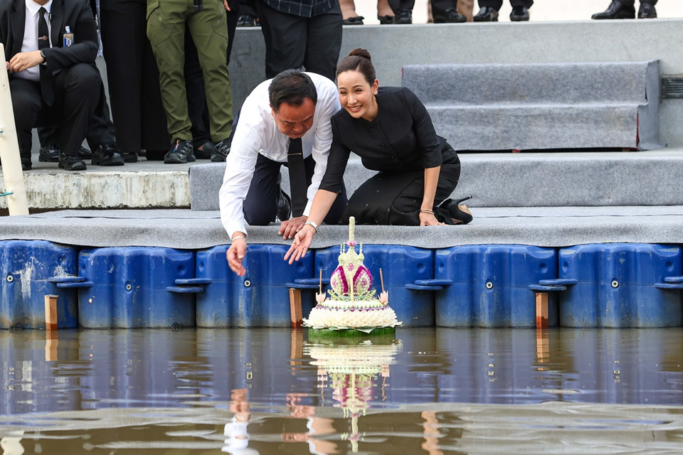 เมื่อเวลา 16.54 น.วันที่ 5 พ.ย.ที่ทำเนียบรัฐบาล นายอนุทิน ชาญวีรกูล นายกรัฐมนตรีและรมว.มหาดไทย พร้อมภริยาน.ส.ธนนนท์ นิรามิษ เดินลงจากตึกไทยคู่ฟ้า เพื่อไปทำกิจกรรมลอยกระทงเพื่อสืบสานประเพณีไทย ที่คลองผดุงกรุงเกษม ข้างทำเนียบรัฐบาล โดยมีนายโสภณ ซารัมย์ รองนายกรัฐมนตรี น.ส. ศุภมาส อิศรภักดี นายสันติ ปิยะทัต รมต.ประจำสำนักนายกฯ ร่วมลอยกระทงด้วย