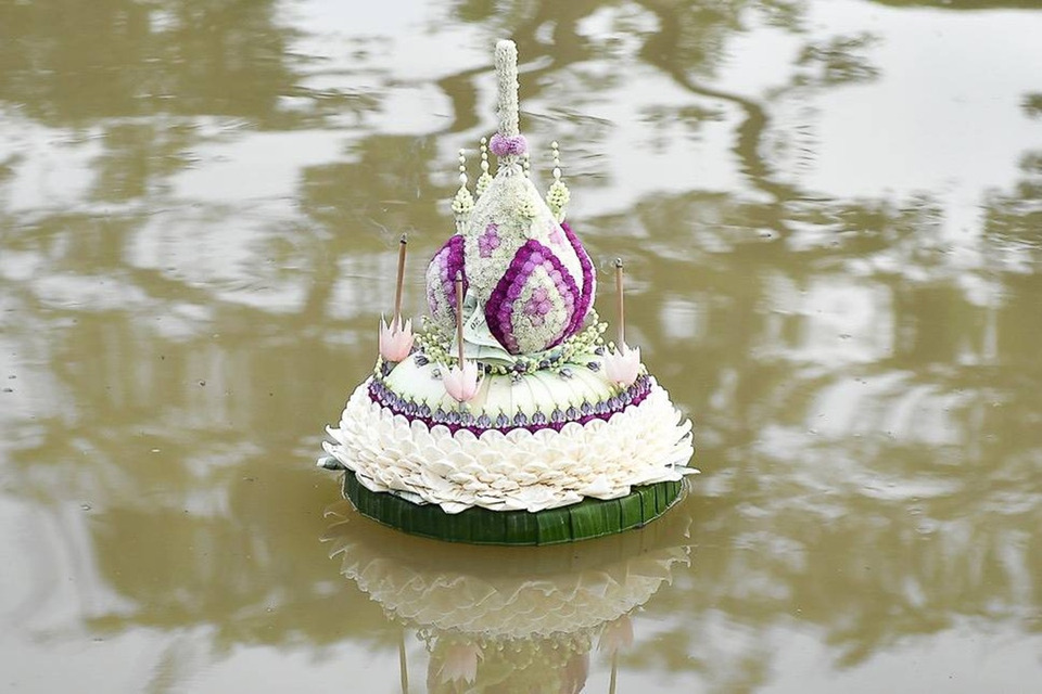 ผู้สื่อข่าวรายงานว่า กระทงของนายกฯ ในครั้งนี้ งดงามบริสุทธิ์ด้วยกลีบพลับพลึงสีขาว รังสรรค์อย่างวิจิตรบรรจงจากกาบของต้นพลับพลึง น้อมนำรูปทรงดอกบัวอันเป็นมงคล ตามคติความเชื่อในประเพณีลอยกระทงของไทย เพื่อบูชาพระแม่คงคา และน้อมถวายอาลัยแด่สมเด็จพระนางเจ้าสิริกิติ์ พระบรมราชินีนาถ พระบรมราชชนนีพันปีหลวง โดยเป็นผลงานของนักศึกษาคณะเทคโนโลยีคหกรรมศาสตร์ (โชติเวช) มหาวิทยาลัยเทคโนโลยีราชมงคลพระนคร
