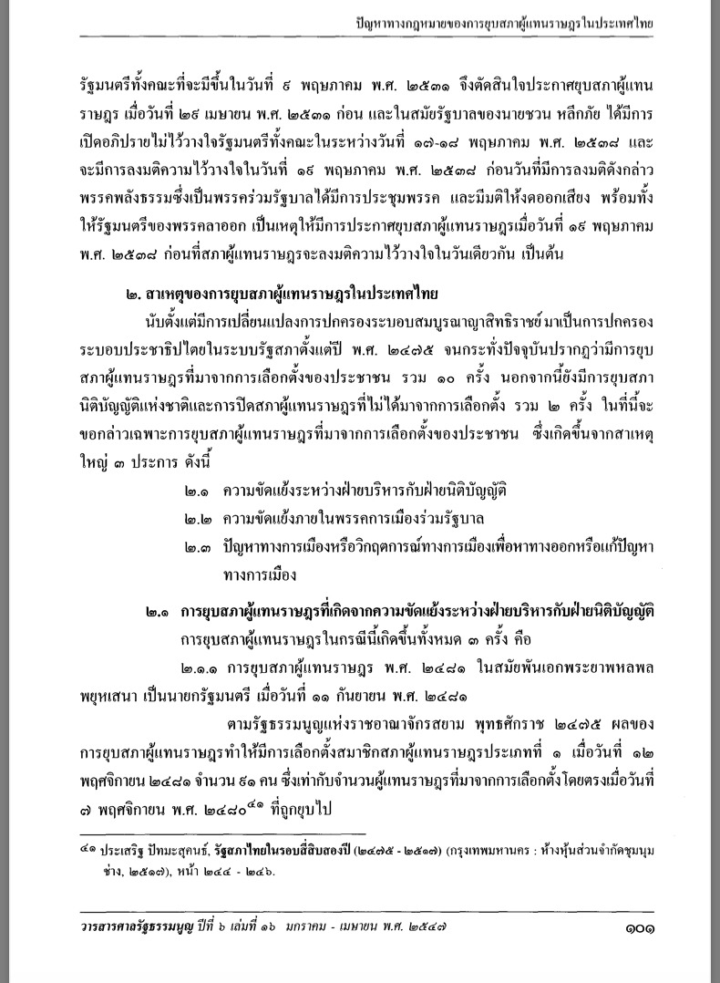 ล่าสุดนั้นมีการเผยแพร่เนื้อหาจากวารสารศาลรัฐธรรมนูญ ปีที่ 6 เล่มที่ 16 เดือน ม.ค.- เม.ย. พ.ศ..2547 หน้าที่ 100 ซึ่งอ้างถึงความเห็นของ นายบวรศักดิ์ ในฐานะเลขานุการคณะกรรมาธิการยกร่างรัฐธรรมนูญ และสภาร่างรัฐธรรมนูญ (สสร.) 2540 ซึ่งถูกบันทึกไว้ในรายงานการประชุมคณะกรรมาธิการพิจารณาร่างรัฐธรรมนูญ ครั้งที่ 20/2540 ในหัวข้อ 1.5 การห้ามยุบสภาผู้แทนราษฎรในระหว่างที่มีการเปิดอภิปรายไม่ไว้วางใจรัฐธรรมนูญ พ.ศ.2540 นับเป็นรัฐธรรมนูญฉบับแรกที่ได้บัญญัติห้ามยุบสภา ในระหว่างที่มีการเสนอญัตติขอเปิดอภิปรายทั่วไปเพื่อลงมติไม่ไว้วางใจนายกรัฐมนตรี
