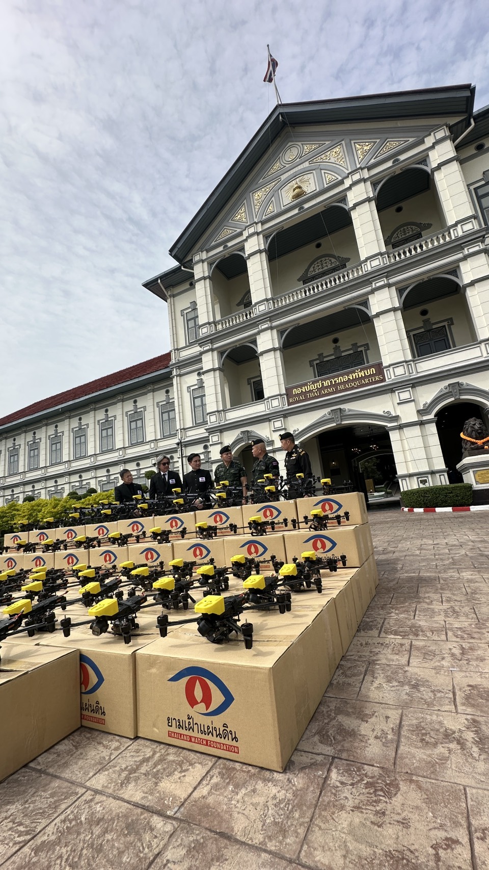 วันที่ 24 พ.ย.68 นาย ปานเทพ พัวพงศ์พันธ์ ประธานมูลนิธิยามเฝ้าแผ่นดิน พร้อมด้วย พ่อเลี้ยงเจ จิตนาถ ลิ้มทองกุล และคณะ มอบอากาศยานไร้คนขับ Droneแบบพิเศษ โดยทีมคนไทย 100 ระบบ ให้กับ ทบ. เพื่อสนับสนุนในพื้นที่ชายแดนไทย-กัมพูชา มูลค่าเกือบ 20 ล้านบาท โดยมี พล.ท. บุญสิน พาดกลาง ที่ปรึกษา ผบ.ทบ. และพลโทวีระยุทธ รักศิลป์ แม่ทัพภาค2 ที่ บก.ทบ.