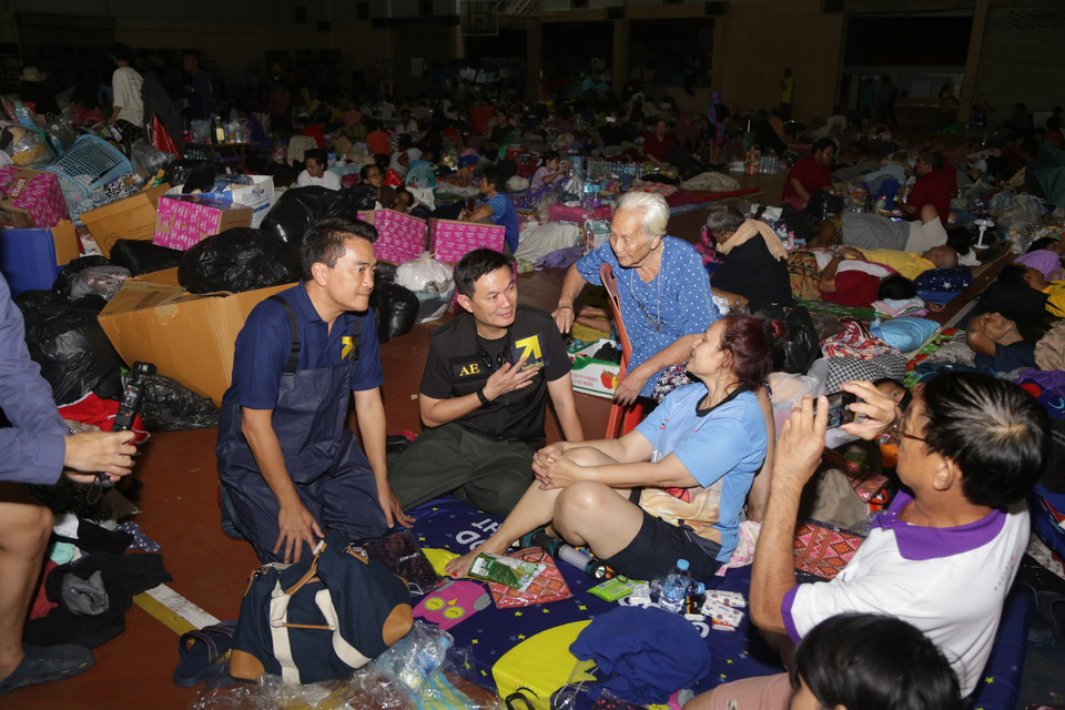 ก่อนที่จะเดินทางไปเยี่ยมประชาชนที่อพยพมาอยู่ที่โรงเรียนหาดใหญ่รัฐประชาสรรค์ ถูกจัดเป็นศูนย์พักพิง ซึ่งมีประชาชนกว่า 6,000 คน พร้อมทั้งได้พูดคุยกับครอบครัวที่มาพร้อมกับบุตรชาย หญิงตั้งครรภ์กว่า 8 เดือนที่ต้องอยู่คนเดียวในศูนย์ โดยได้พูดคุยให้กำลังใจ พร้อมกับมอบสิ่งของบริจาค ไม่ว่าจะเป็นอาหารน้ำดื่ม สิ่งของอุปโภค - บริโภค