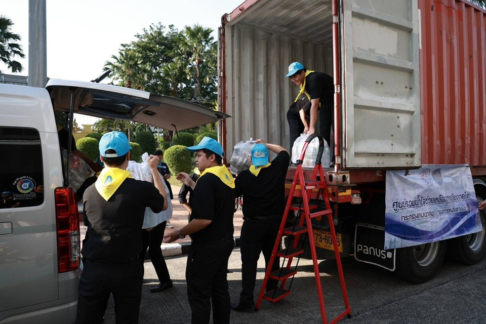 ทางองค์การบริการทางอากาศ (บวท.) และท่าอากาศยานไทย (ทอท.) ได้เปิดจุดรับบริจาคและจัดส่งถุงยังชีพอย่างต่อเนื่อง โดยล่าสุด ทอท. ได้ส่งมอบถุงยังชีพจำนวน 1,500 ชุดถึงท่าอากาศยานหาดใหญ่แล้ว และอยู่ระหว่างจัดเตรียมเพิ่มเติมตามแนวทางที่กระทรวงคมนาคมกำหนด ขณะเดียวกัน กรมการขนส่งทางบกได้เปิด “ศูนย์จิตอาสาคมนาคม” เป็นวันที่สอง เพื่อรับบริจาคสิ่งของและจัดถุงยังชีพจำนวน 900 ถุง มอบให้กับประชาชนในอำเภอหาดใหญ่ โดยได้รับการสนับสนุนด้านการขนส่งจากสมาพันธ์การขนส่งทางบกที่นำรถบรรทุกคอนเทนเนอร์มาร่วมปฏิบัติภารกิจ