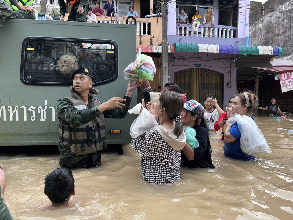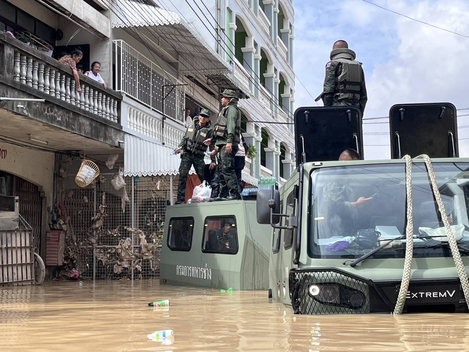 วันที่ 27 พฤศจิกายน 2568 กองทัพบก โดยกรมการทหารช่าง นำรถสายพานเอนกประสงค์ (Extreme V) ซึ่งมีขีดความสามารถในการลุยน้ำลึกและเคลื่อนที่ผ่านสิ่งกีดขวางหรือวัตถุแหลมคมใต้น้ำได้ ลงพื้นที่ตลาดทัวร์รัถการ และชุมชนป้อม 6 ตำบลหาดใหญ่ อำเภอหาดใหญ่ จังหวัดสงขลา เพื่อนำอาหารและน้ำดื่มไปแจกจ่ายให้กับประชาชนที่ได้รับผลกระทบ จำนวน 160 หลังคาเรือน