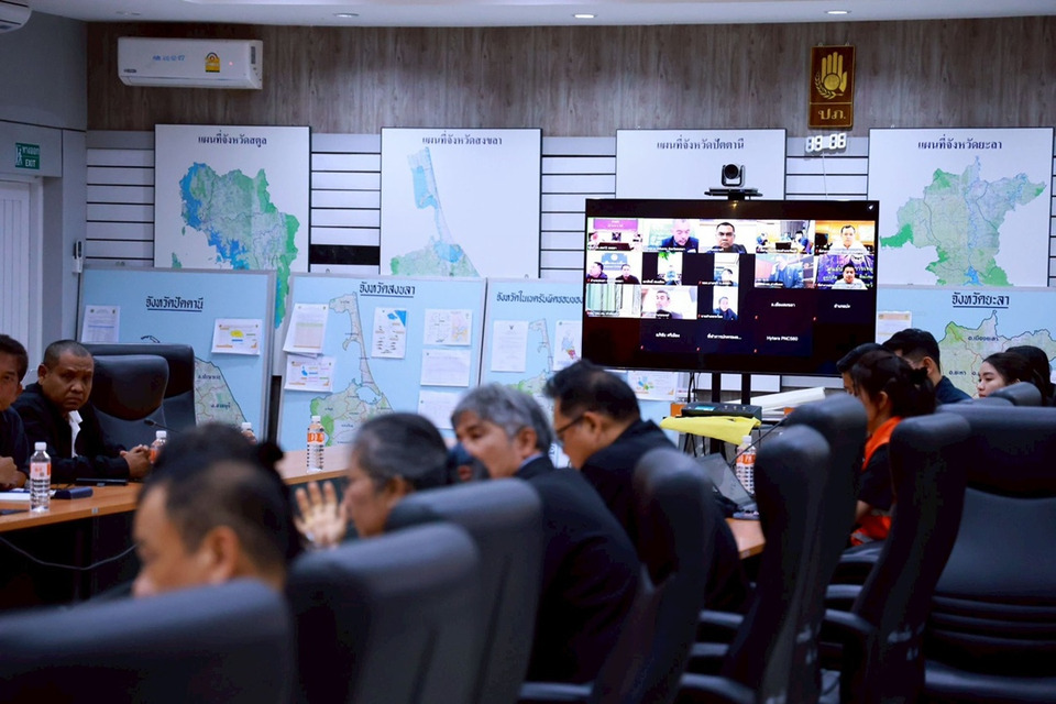 วันที่ 27 พ.ย.68 เวลา 19.00 น. ณ กองอำนวยการป้องกันและบรรเทาสาธารณภัยกลาง (ส่วนหน้า) ศูนย์ป้องกันและบรรเทาสาธารณภัย เขต 12 สงขลา นายอรรษิษฐ์ สัมพันธรัตน์ ปลัดกระทรวงมหาดไทย ติดตามการปฏิบัติงานช่วยเหลือผู้ประสบอุทกภัยในพื้นที่อำเภอหาดใหญ่ จังหวัดสงขลา และวางแผนการฟื้นฟูพื้นที่ที่สถานการณ์เริ่มคลี่คลาย โดยนำข้อเน้นย้ำของนายอนุทิน ชาญวีรกูล นายกรัฐมนตรีและรัฐมนตรีว่าการกระทรวงมหาดไทย ที่สั่งการให้ผู้ว่าราชการจังหวัด และนายอำเภอในพื้นที่ประสบอุทกภัยจังหวัดสงขลา เร่งช่วยเหลือด้านการดำรงชีพในพื้นที่ที่ยังคงมีน้ำท่วมและพื้นที่สถานการณ์คลี่คลาย โดยมีนายธีรพัฒน์ คัชมาตย์ อธิบดีกรมป้องกันและบรรเทาสาธารณภัย นายธีรุตม์ ศุภวิบูลย์ผล อธิบดีกรมส่งเสริมการปกครองท้องถิ่น ร่วมประชุม พร้อมทั้งนายอำเภอในพื้นที่จังหวัดสงขลาและผู้แทนส่วนราชการที่เกี่ยวข้องร่วมประชุมผ่านระบบอิเล็กทรอนิกส์