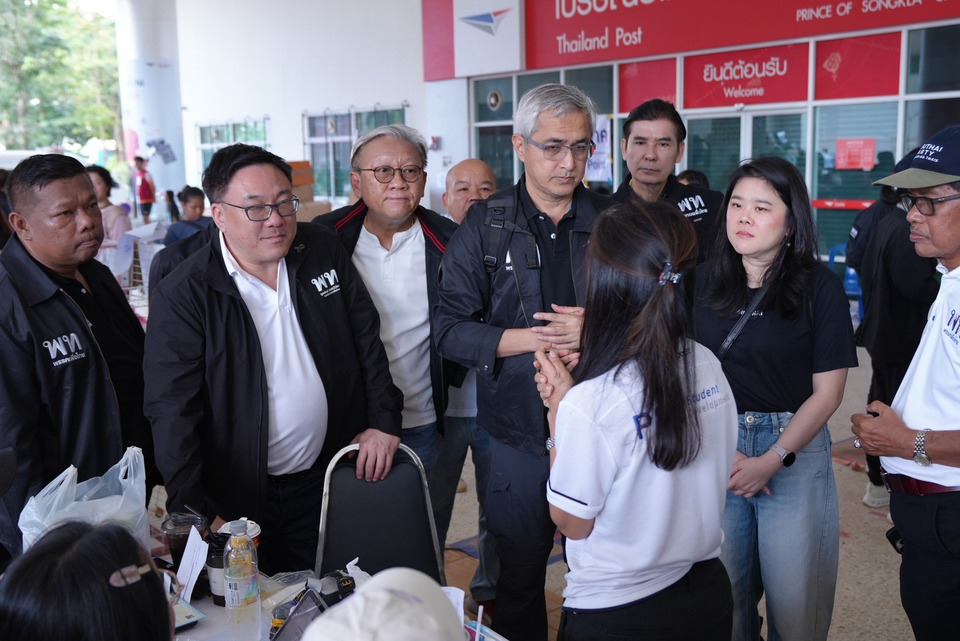 วันที่ 30 พ.ย.2568 ที่ อาคารกีฬาและนันทนาการ ศูนย์กีฬาและสุขภาพ ม.อ. หาดใหญ่พรรคเพื่อไทย นำโดย นายจุลพันธ์ อมรวิวัฒน์ หัวหน้าพรรค พร้อมด้วยทีมผู้บริหาร สมาชิกสภาผู้แทนราษฎร (สส.) สมาชิกพรรค ร่วมให้กำลังใจผู้ประสบภัย อาสาสมัคร บุคลากรทางการแพทย์ ในศูนย์อพยพ พร้อมมอบเครื่องใช้ทางการแพทย์ ยารักษาโรคเบื้องต้นให้กับหน่วยแพทย์ชั่วคราว