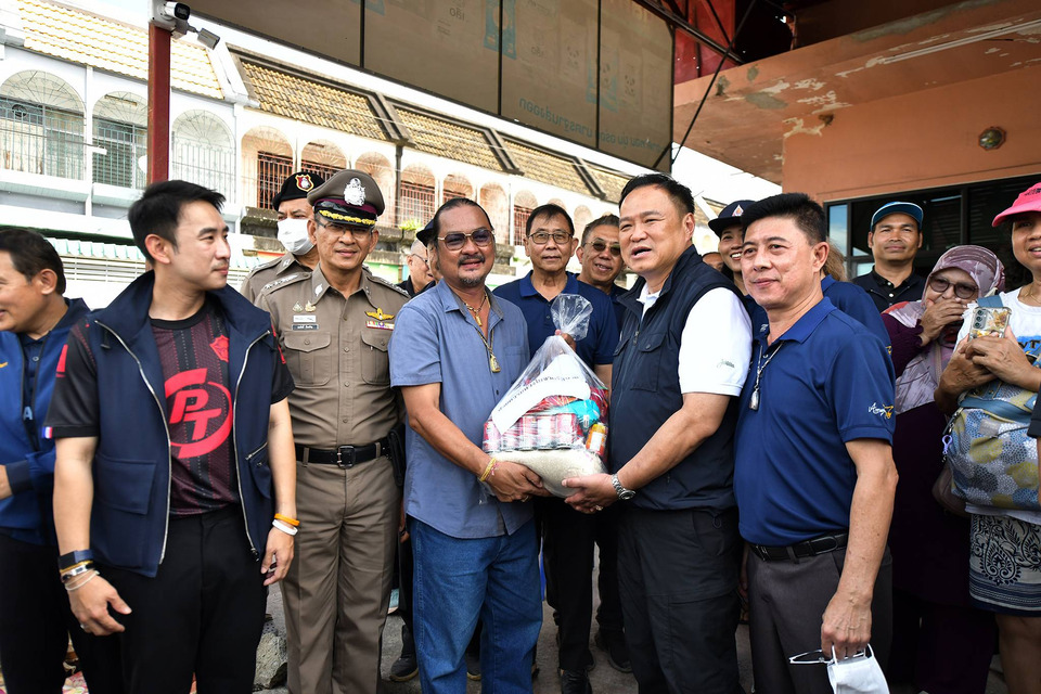 จากนั้นนายกฯ ได้มอบถุงยังชีพให้กับประชาชน เดินให้กำลังใจพ่อค้าแม่ค้า และนายกฯ ยังได้อุดหนุนขนมตุ๊บตั๊บ แล้วนำมาแจกให้กับสื่อมวลชนและขณะที่ร่วมติดตามลงพื้นที่ด้วย