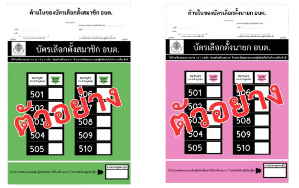 บัตรเลือกตั้งที่ใช้ในการเลือกตั้ง สมาชิกสภาองค์การบริหารส่วนตำบลและนายกองค์การบริหารส่วนตำบล ที่จะมีการเลือกตั้งในวันอาทิตย์ที่ 11 มกราคม 2569