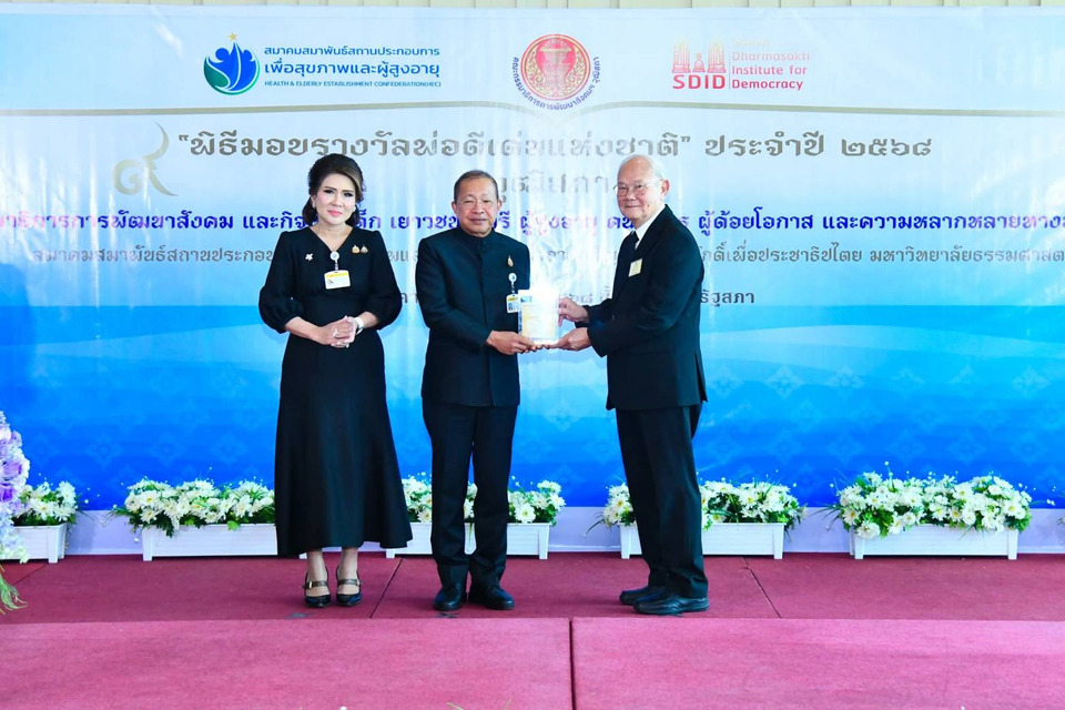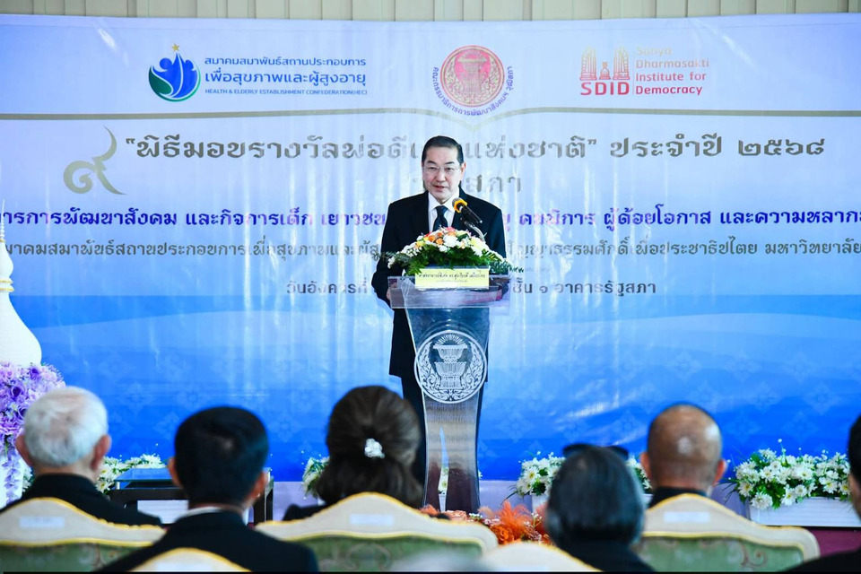 เมื่อวันที่ 9 ธันวาคม ที่รัฐสภา นายมงคล สุระสัจจะ ประธานวุฒิสภา (ส.ว.)เป็นประธานในพิธีมอบรางวัล “พ่อดีเด่นแห่งชาติ” ประจำปี 2568 ซึ่งจัดโดยคณะกรรมาธิการ(กมธ.)การพัฒนาสังคม และกิจการเด็ก เยาวชน สตรี ผู้สูงอายุ คนพิการ ผู้ด้อยโอกาส และความหลากหลายทางสังคม วุฒิสภา ร่วมกับสมาคมสมาพันธ์สถานประกอบการเพื่อสุขภาพและผู้สูงอายุ และสถาบันสัญญาธรรมศักดิ์เพื่อประชาธิปไตย มหาวิทยาลัยธรรมศาสตร์ โดยมี นางวราภัสร์ ไพพรรณรัตน์ ประธานกมธ.ร่วมประกาศรายชื่อผู้ได้รับรางวัลพ่อดีเด่นแห่งชาติ จำนวน 45 ท่าน เพื่อเชิดชูบทบาทความเป็นพ่อที่เป็นแบบอย่างแก่สังคมไทย