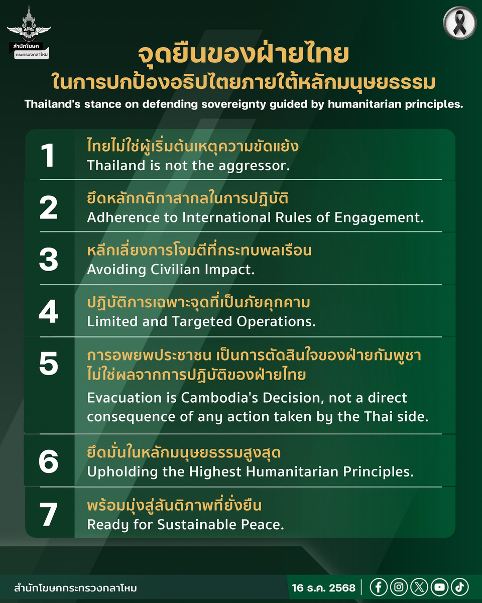 จุดยืนของฝ่ายไทย ในการปกป้องอธิปไตยภายใต้หลักมนุษยธรรม