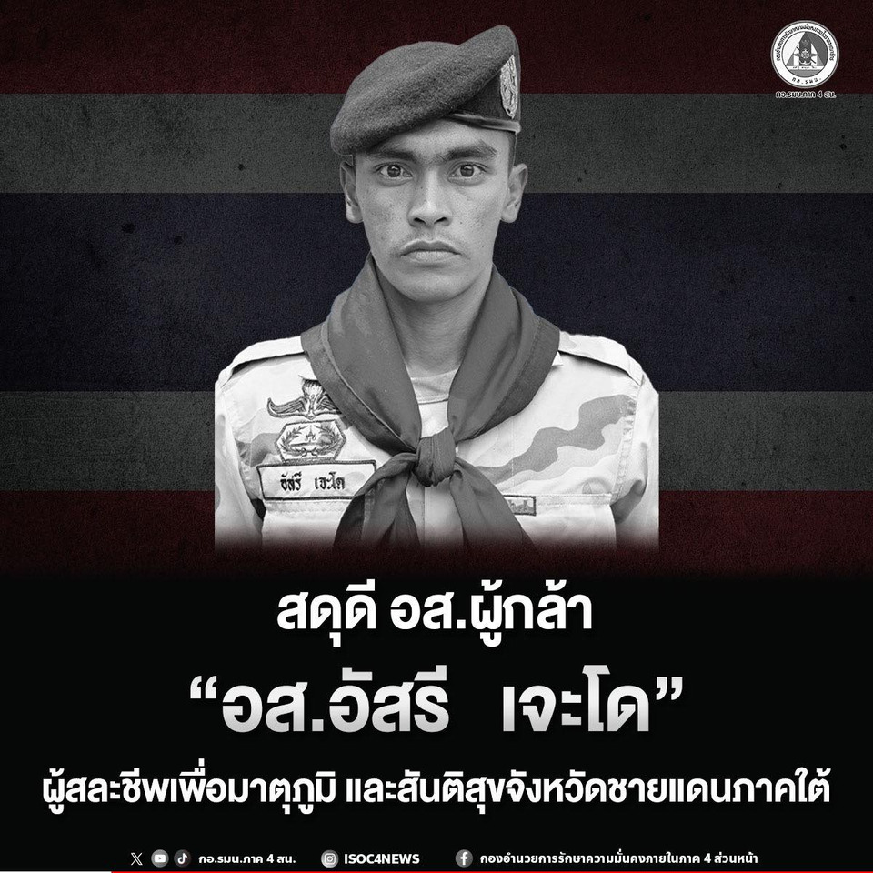 ล่าสุด เพจเฟซบุก "กองอำนวยการรักษาความมั่นคงภายในภาค 4 ส่วนหน้า" ได้สดุดีอส.อัสรี