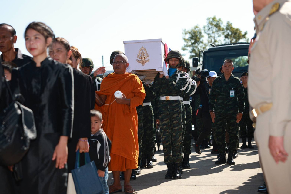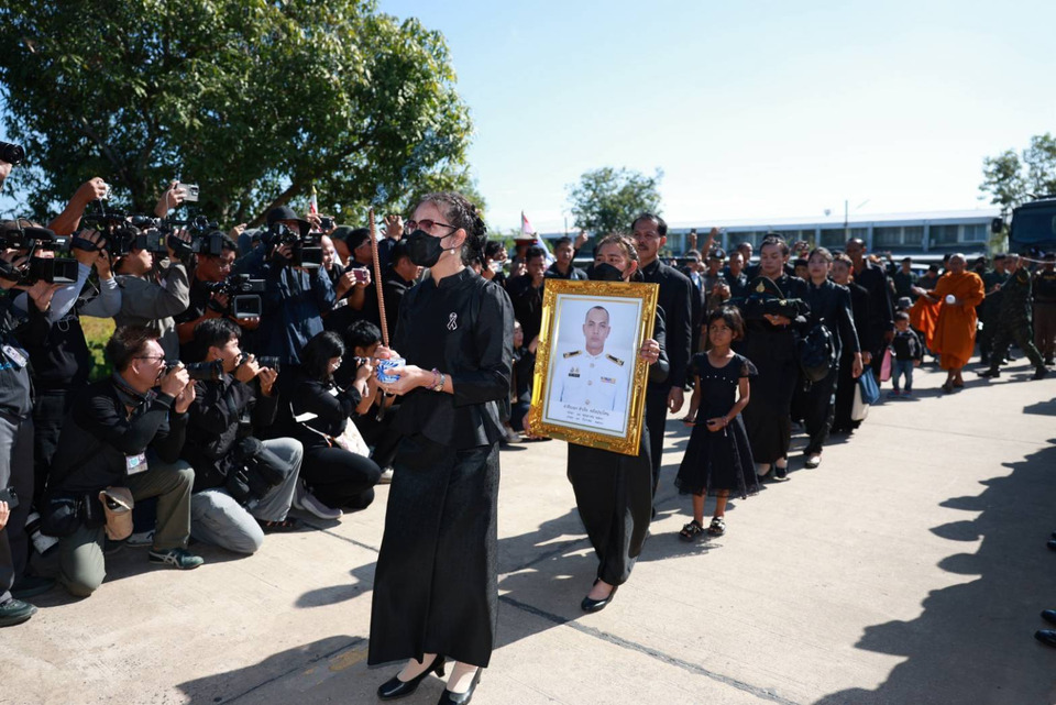 โดยบรรยากาศภายในพิธีเต็มไปด้วยความโศกเศร้าเศร้าของ ครอบครัวทหารกล้าทั้งสองครอบครัว รวมทั้งมีประชาชนชาวจังหวัดสุรินทร์ ยืนเข้าแถวโบกธงชาติไทยบริเวณถนนทางออกของโรงพยาบาลฯ เพื่อร่วมส่งทหารกล้าทั้งสองนาย กลับภูมิลำเนาเพื่อประกอบพิธีกรรมทางศาสนา