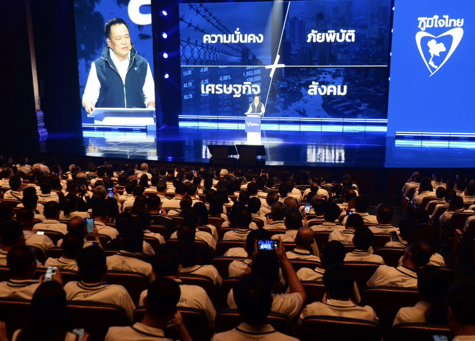 วันที่ 24 ธ.ค.2568 เวลา 10.30 น. ที่โรงละครอักษรา ศูนย์การค้าคิงพาวเวอร์ พรรคภูมิใจไทยจัดการประชุมพรรค และแถลงนโยบายในการเลือกตั้ง นำโดยนายอนุทิน ชาญวีรกูล นายกรัฐมนตรี และรมว.มหาดไทย ในฐานะหัวหน้าพรรคภูมิใจไทย พร้อมแกนนำพรรค อาทิ นายชาดา ไทยเศรษฐ์ นายพิพัฒน์ รัชกิจประการ รวมถึงแกนนำกลุ่มต่างๆ ที่เพิ่งเข้ามาอยู่พรรคภูมิใจไทย อาทิ นายวราวุธ ศิลปอาชา นายเอกนัฏ พร้อมพันธุ์ นายสนธยา คุณปลื้ม นายสุชาติ ชมกลิ่น แกนนำรัฐบาลที่ถูกจับตาว่าจะเป็นแคนดิเดตนายกฯ พรรคภูมิใจไทยมาร่วมอย่างพร้อมหน้าทั้ง นายเอกนิติ นิติทัณฑ์ประภาศ รองนายกฯและรมว.คลัง นางศุภจี สุธรรมพันธุ์ รมว.พาณิชย์ นายสีหศักดิ์ พวงเกตุแก้ว รมว.ต่างประเทศ และว่าที่ผู้สมัคร สส.ทั้ง 500 คนมาร่วมประชุมอย่างคึกคัก
