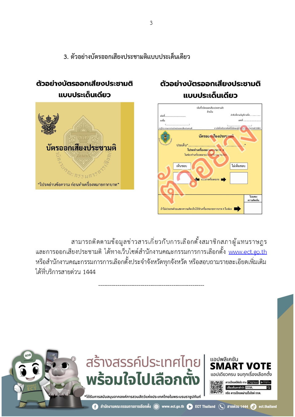 1. ตัวอย่างบัตรเลือกตั้งสมาชิกสภาผู้แทนราษฎรแบบแบ่งเขตเลือกตั้ง (สีเขียว)