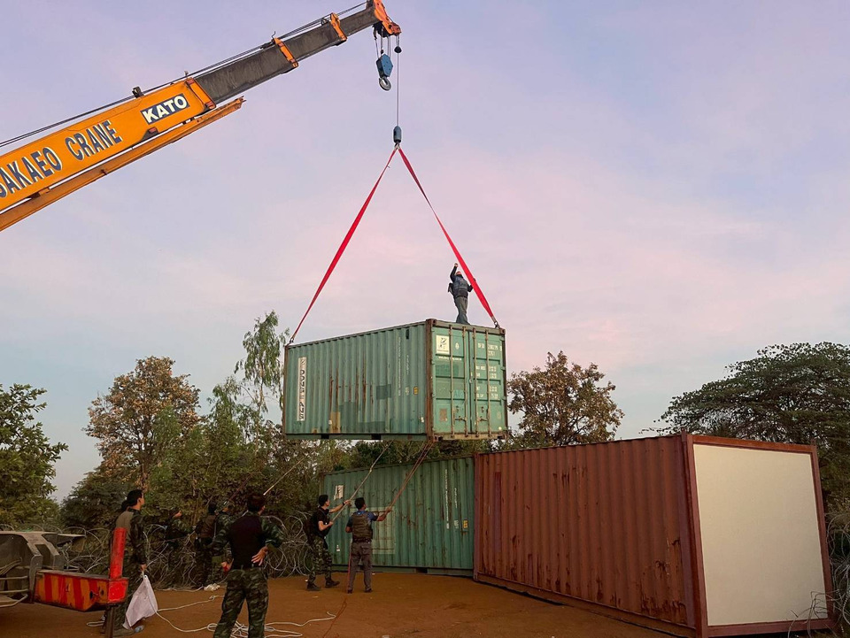 วันที่ 30 ธ.ค.68 กองกำลังบูรพาเดินหน้าวางตู้คอนเทนเนอร์ เพื่อเป็นแนวป้องกัน ในพื้นที่บ้านหนองจานและบ้านหนองหญ้าแก้ว อำเภอโคกสูง จังหวัดสระแก้ว