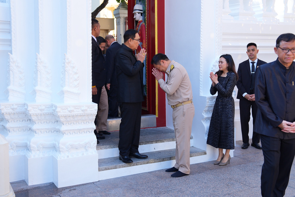 มีช่วงหนึ่งที่นายอนุทินเดินมาส่งพลเอกประยุทธ์ นายอนุทินได้ส่งมือให้พลเอกประยุทธ์จับลักษณะประคองขณะก้าวลงบันไดผ่านธรณีประตูวัด ก่อนที่พลเอกประยุทธ์จะเดินทางกลับ.