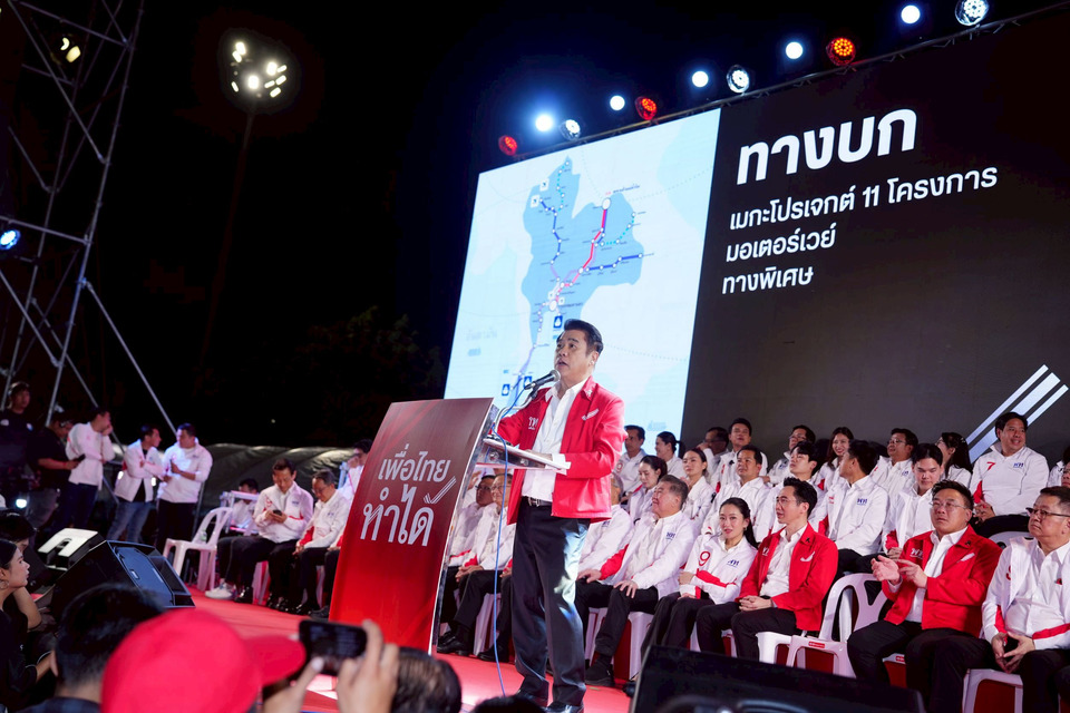 โครงการบ้านเพื่อคนไทย และเส้นเลือดใหญ่ของคมนาคมต้องเกิดขึ้น ทั้งรถไฟทางคู่ ท่าเรือ สนามบินใหม่ เพื่อไทยทำได้ และที่ว่ามาเพื่อให้คนไทยกลับมามีกำลังมีโอกาสและคนไทยจะรวยขึ้น ตลอดเส้นทางกลางเมือง 25 ปี ตนเป็นนักทำ ที่ไม่เหมือนคนอื่นคือนักทำงานยากที่ท้าทายถ้างานง่ายตนไม่ทำ ทุกงานที่ตนตั้งใจไม่เคยล้มเหลว ตนทำการเมืองมา 25 ปี นอกจากทำเพื่อชาติบ้านเมืองจะทำให้หลานมันดูด้วย สุวรรณภูมิสร้างเสร็จตอนตนเป็นรมว.คมนาคมสมัยแรกและมีนายทักษิณ ชินวัตร อดีตนายกฯเป็นนายกฯ สำหรับโครงการคนละครึ่งนั้น นโยบายอะไรที่ทำเพื่อคนไทย เราพร้อมเดินหน้าต่อ โดยจะยกระดับคนละครึ่งโดยรัฐให้70% ประชาชนจ่าย 30% นโยบายเหล่านี้ทำได้จริงถ้าเรามีแรงมากพอเกิน 200