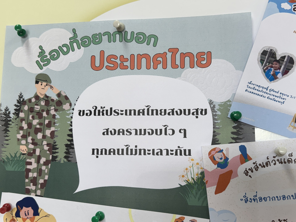 โดยมีผลงานบางส่วนที่น่าสนใจ อาทิ หนูอยากให้ไม่มีคนทะเลาะกัน , ขอให้ประเทศไทยสงบสุข สงครามจบไวๆ ทุกคนไม่ทะเลาะกัน, ขอให้สงครามจบเร็วๆ ประเทศไทยชนะ ไม่มีสงครามอีก ถ้ามีอีกก็ชนะ ประเทศไทยสงบสุข, หนูอยากให้ชายแดนประเทศไทยสงบสุข เพื่อนๆ จะได้เรียนหนังสือ ,ช่วยเป็นพื้นที่ปลอดภัยให้หนูด้วยนะคะ, หนูอยากให้ประเทศไทยมีความยุติธรรม, หนูอยากให้เด็กทุกคนมีอาหารกินอิ่ม ,หนูอยากให้เด็กทุกคนได้ไปโรงเรียน รวมถึงวาดรูปให้กำลังใจนายกฯ ด้วย