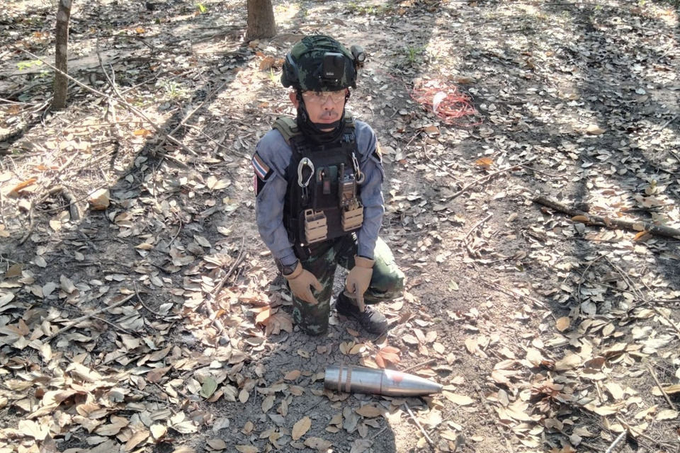 ทำการตรวจพื้นที่และเก็บกู้วัตถุระเบิดที่เกิดจากการสู้รบเพื่อทําให้ปลอดภัย ได้ทำการเก็บกู้สรรพาวุธระเบิดที่ยังไม่ระเบิด (UXO) นำไปเก็บรักษาไว้ที่คลังเก็บ หน่วยเฉพาะกิจ กองร้อยตำรวจตระเวนชายแดนที่ 216 อำเภอบ้านกรวด จังหวัดบุรีรัมย์ เพื่อรอการอนุมัติทำลาย จำนวน 5 นัด ดังนี้