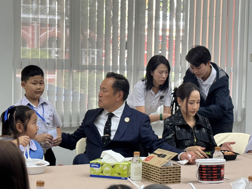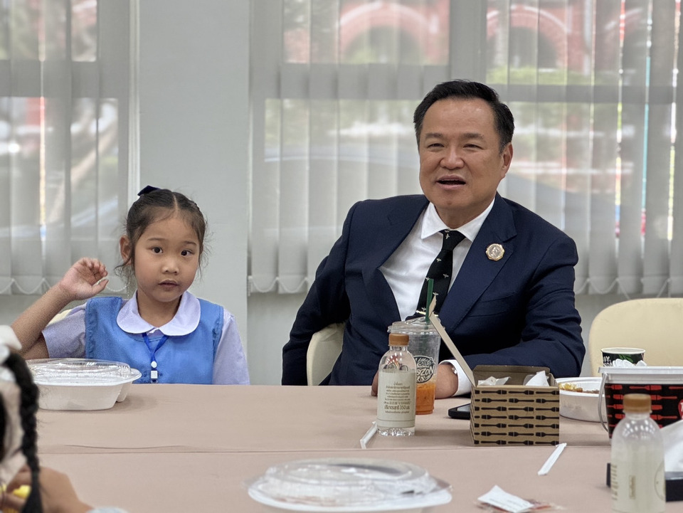 ต่อมาเวลา 12.00 น. ที่ชั้น 1 อาคาร 44 สำนักเลขาธิการนายกรัฐมนตรี นายอนุทิน พร้อมภริยา และน.ส.ไตรศุลี ไตรสรณกุล เลขาธิการนายกฯ ร่วมรับประทานอาหารเที่ยงกับลูกและครอบครัววีรชนที่เสียสละชีวิตจากเหตุปะทะชายแดนไทย-กัมพูชา 21 ครอบครัวจำนวน 43 คน โดยมีเมนูอาหาร อาทิ ข้าวผัดทะเล ข้าวผัดปลาสลิตไข่ต้ม ข้าวคลุกกระเพรา สปาเก็ตตี้ขี้เมา ไก่บอนชอน เค้ก ซาลาเปา ไอศกรีม เป็นต้น