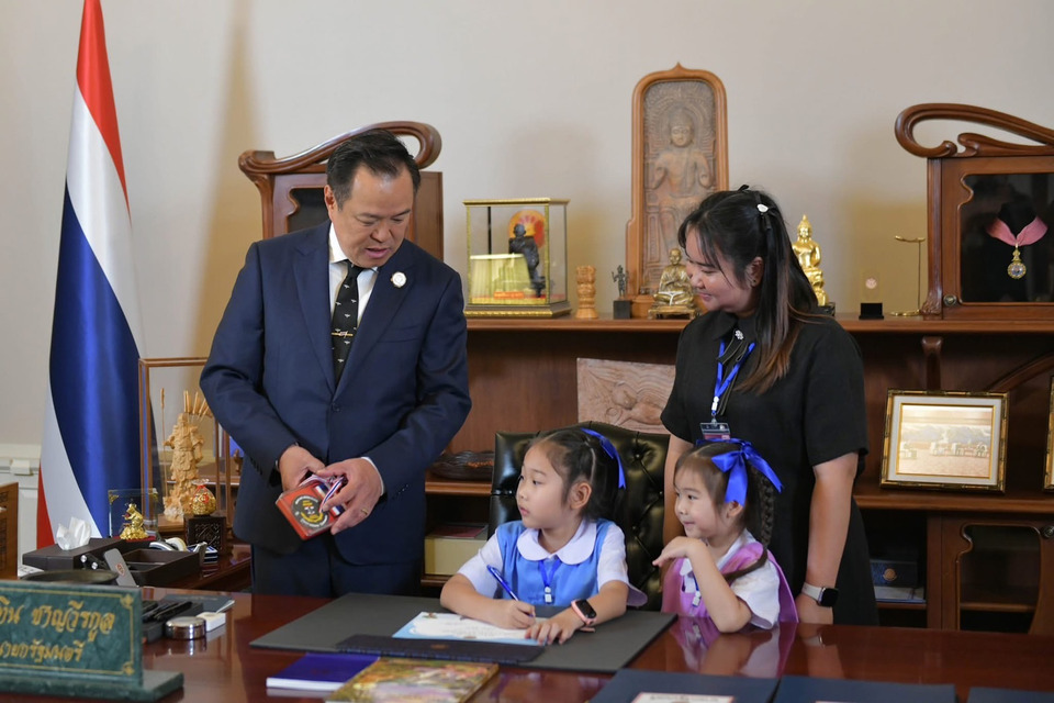 เมื่อเวลา 09.43 น. วันที่ 10 ม.ค. 69 นายอนุทิน ชาญวีรกูล นายก รัฐมนตรีและรัฐมนตรีว่าการกระทรวงมหาดไทย เปิดโอกาสให้ครอบวีรชนที่สละชีพในเหตุปะทะชายแดนไทย -กัมพูชา 21 ครอบครัว 43 คน เดินทางมาทำเนียบรัฐบาล โดยได้ขึ้นตึกไทยคู่ฟ้า ถ่ายรูปหมู่ร่วมกับนายกรัฐมนตรีและนางธนนนท์ นิรามิษ ภริยา จากนั้นนายกฯ ได้นำบรรดาบุตรหลานวีรชน ไปยังห้องทำงานเพื่อนั่งเก้าอี้ พร้อมถ่ายรูปและได้เซ็นชื่อเกียรติบัตรนายกฯในอนาคตด้วยตนเอง