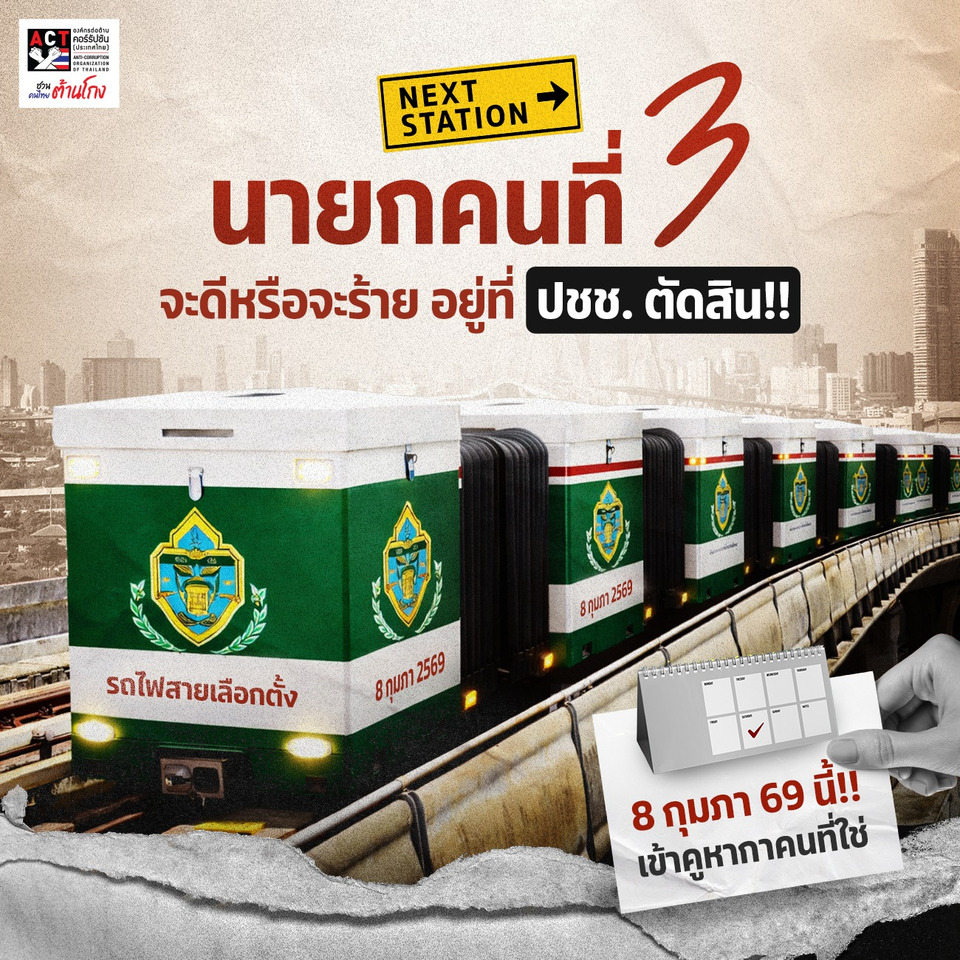 วันที่ 13 ม.ค.2569 องค์กรต่อต้านคอร์รัปชั่น เผยแพร่ข้อความผ่านเพจเฟซบุก ถึงเรื่องการเลือกตั้งสส.ที่จะมีขึ้นในวันที่ 8 ก.พ.นี้ ระบุว่า