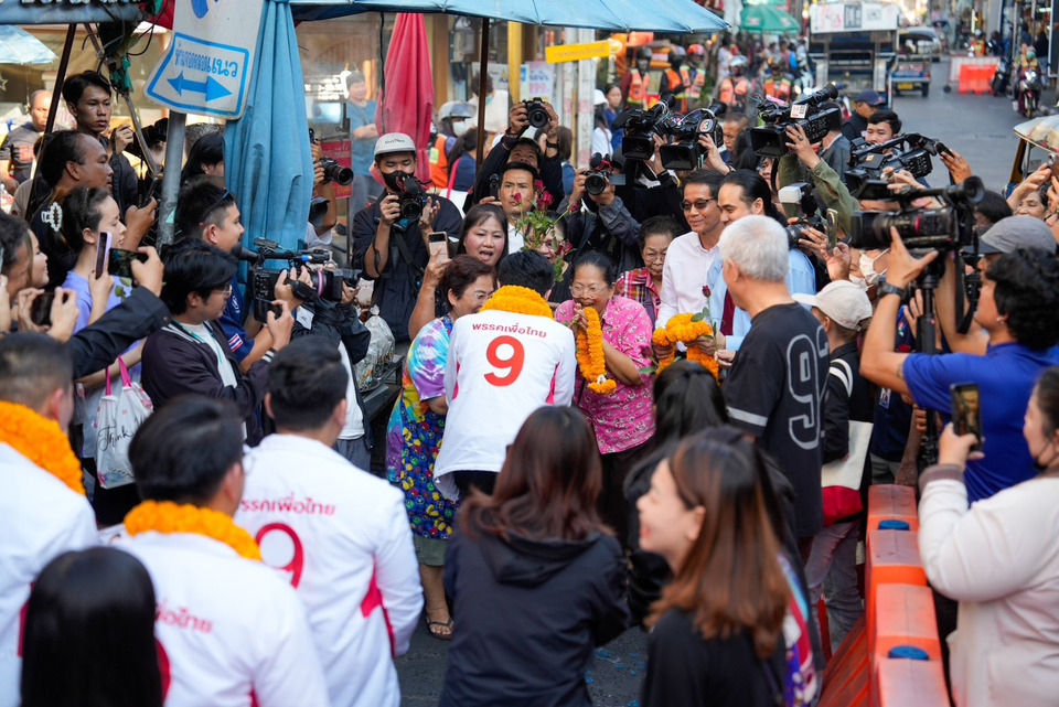 นอกจากนี้ได้ถามแม่ค้าขายผักถึงสถานการณ์การค้าขาย ซึ่งได้รับเสียงสะท้อนว่าช่วงนี้บรรยากาศเงียบ สินค้ามีราคาสูงขึ้น ทำให้ประชาชนต้องประหยัดและซื้อของน้อยลงกว่าเดิมมาก จึงให้กำลังใจ พร้อมยืนยันว่าพรรคเพื่อไทยมีนโยบายที่เน้นการเพิ่มรายได้และลดรายจ่าย เพื่อดึงเงินกลับเข้าสู่กระเป๋าประชาชนให้เร็วที่สุด และตั้งใจจะเข้ามาปลุกเศรษฐกิจให้ตลาดกลับมาคึกคักอีกครั้ง และยังมีกลุ่มแม่ค้า วินมอเตอร์ไซค์ และผู้จับจ่ายใช้สอย นำดอกไม้มามอบให้เพื่อต้อนรับ ได้ร่วมถ่ายภาพเซลฟี่กับประชาชนอย่างใกล้ชิด