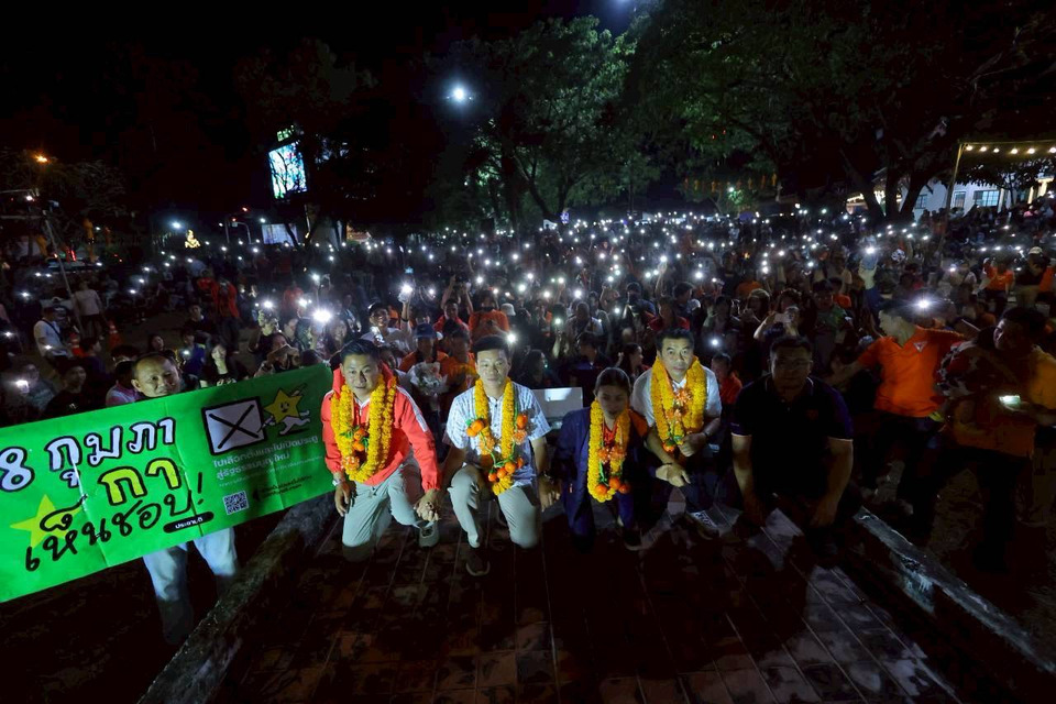 “เข้าคูหานึกถึงคนในครอบครัว นึกถึงหน้าลูกหลาน ถ้าเราอยากส่งต่อประเทศไทยดีที่ดีกว่านี้ ช่วยกันตั้งรัฐบาลประชาชนไปด้วยกัน แล้วผมเชื่อว่าวันที่ 8 กุมภาพันธ์ถ้าเราชนะอย่างถล่มทลาย ตั้งรัฐบาลประชาชนได้ ฟ้าวันใหม่จะเปิด อำนาจสูงสุดจะเป็นของประชาชน” ณัฐพงษ์กล่าว