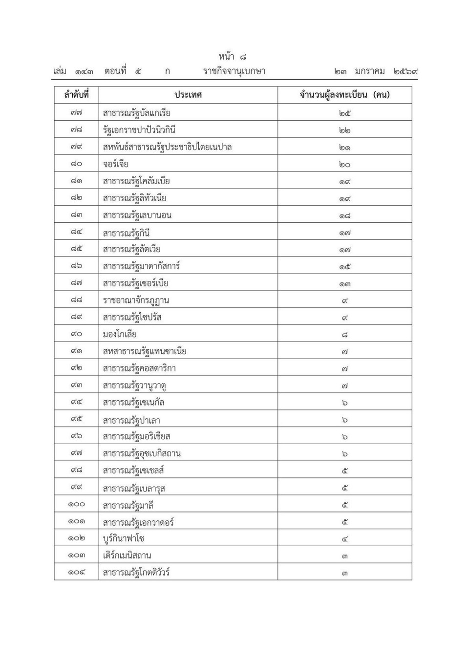 • ประกาศคณะกรรมการการเลือกตั้ง เรื่อง จำนวนผู้ลงทะเบียนขอใช้สิทธิเลือกตั้งสมาชิกสภาผู้แทนราษฎรนอกราชอาณาจักร