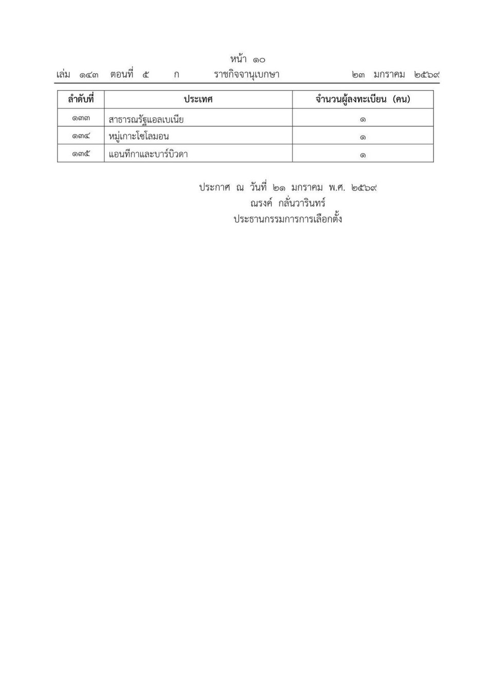 (รายละเอียดตามเอกสารแนบ) ซึ่งได้ประกาศในราชกิจจานุเบกษา เมื่อวันที่ 23 มกราคม 2569