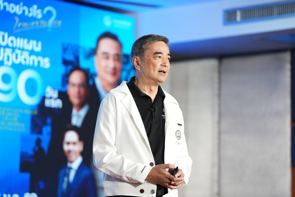 ขณะที่ นายอภิสิทธิ์ เวชชาชีวะ แคนดิเดตนายกรัฐมนตรีพรรคประชาธิปัตย์ เน้นย้ำถึงการขับเคลื่อนเศรษฐกิจ 3 ส่วน โดยเริ่มจากการประเมินสถานการณ์ทางการคลังเพื่อกระตุ้นเศรษฐกิจระยะสั้นควบคู่ไปกับการพักหนี้ การดูแลกลุ่มเปราะบางผ่านสวัสดิการตั้งแต่เด็กจนถึงผู้สูงอายุ 1,000 บาท และการสร้างเครื่องยนต์เศรษฐกิจใหม่ผ่านอุตสาหกรรมเป้าหมาย โดยมีกฎหมายแม่บท 2 ฉบับเป็นเครื่องมือสำคัญในการสะสางกฎหมายเก่าและเปิดข้อมูลรัฐให้ภาคเอกชนใช้ประโยชน์ สำหรับแนวทางใน 100 วันแรก นายอภิสิทธิ์เสนอให้ประเมินงบกลางเพื่อนำไปใช้เยียวยาพื้นที่ที่ได้รับผลกระทบจากสงครามชายแดนและการสู้รบเป็นลำดับแรก