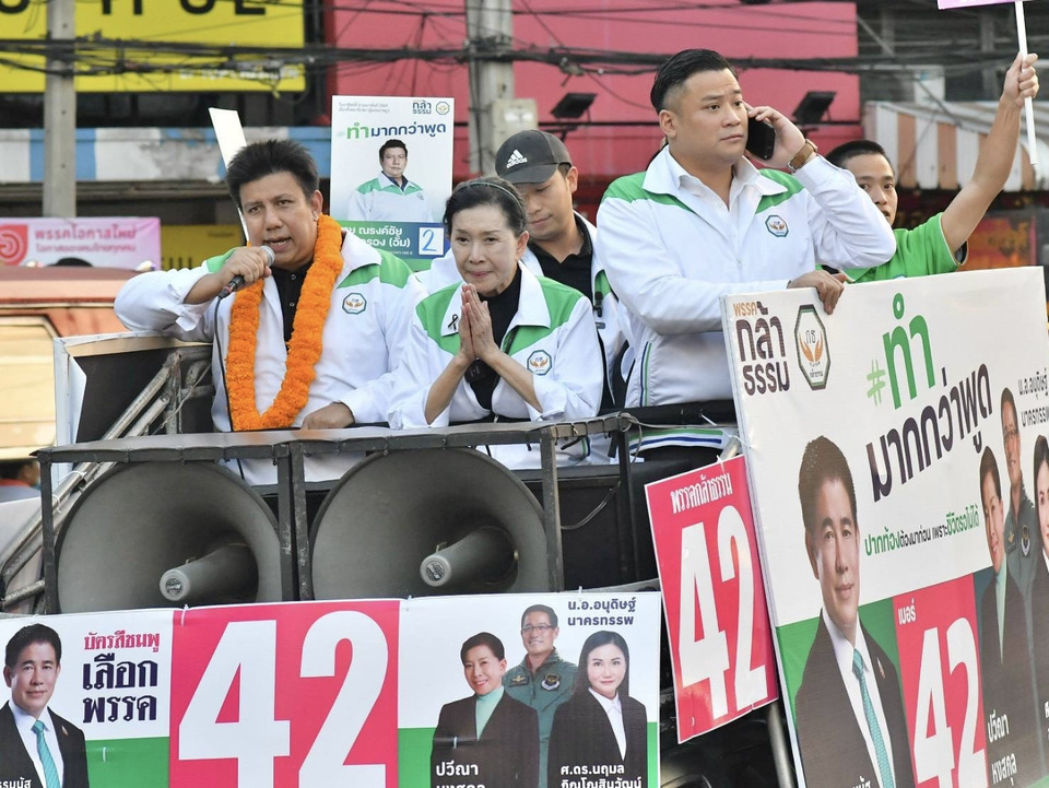 เมื่อวันที่ 28 ม.ค.69 นางปวีณา หงสกุล ประธานที่ปรึกษาฝ่ายสังคม พรรคกล้าธรรม (กธ.) ในฐานะผู้สมัคร สส.บัญชีรายชื่อพรรคกล้าธรรม นำทีมผู้สมัคร สส.กทม. เขต 4 เขต 6 เขต 7 และเขต 8 พรรคกล้าธรรม เดินสายหาเสียงในช่วงโค้งสุดท้าย ประชาสัมพันธ์นโยบายพรรคกล้าธรรม “ทำมากกว่าพูด” ชู 5 นโยบายด้านสังคม สู้ศึกเลือกตั้ง “ข่มขืนฆ่าโหด โทษประหารสถานเดียว ตัดวงจรยาเสพติดสิ้นซาก ส่งบำบัดจริง 1 ปี ฝึกอาชีพ มีงานทำ ตั้งศูนย์เด็กเล็ก ตั้งสถาบันฝึกอาชีพคนพิการ สร้างหมู่บ้านคนพิการ ผ่อนบ้านราคาถูก โรงเรียนผู้สูงอายุเพื่อสร้างอาชีพ ธนาคารประชาชน"