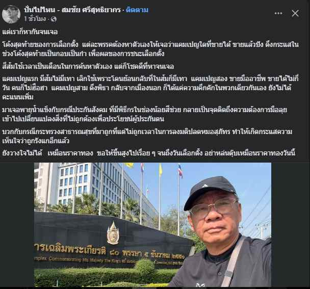 ยังวางใจไม่ได้ เหมือนราคาทอง ขอให้ขึ้นสูงไปเรื่อย ๆ จนถึงวันเลือกตั้ง อย่าหล่นตุ๊บเหมือนราคาทองวันนี้