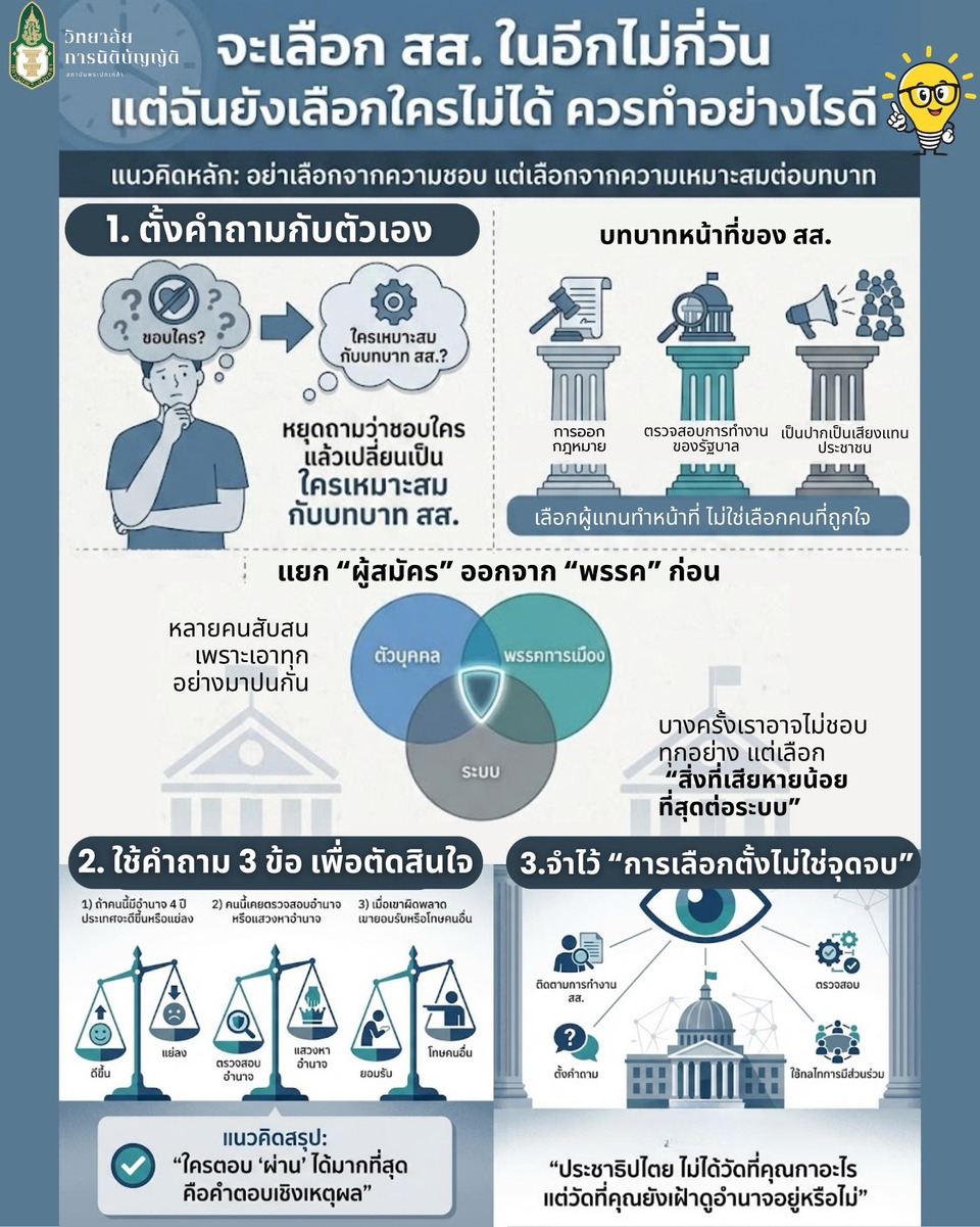 #เลือกตั้งคุณภาพ #เลือกตั้งอย่างมีสติ #พลเมืองตื่นรู้#วิทยาลัยการนิติบัญญัติ #สถาบันพระปกเกล้า #เลือกตั้ง2569 #เลือกตั้งสส #8กุมภา69 #สนามเลือกตั้ง #8กุมภาวันชี้ชะตา