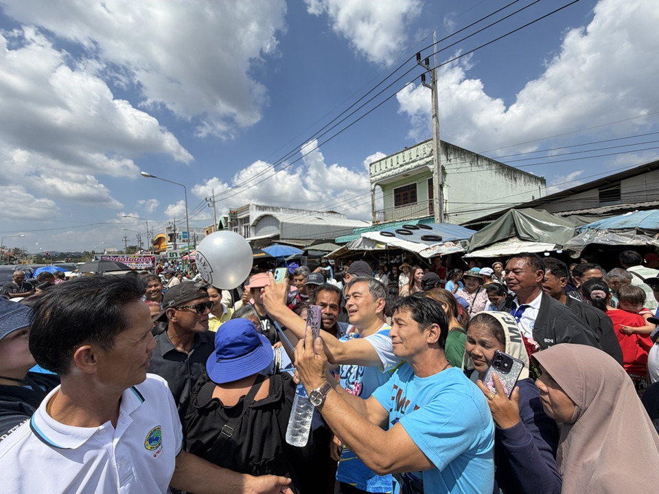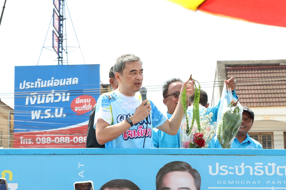 วันที่ 1 ก.พ.2569 นายอภิสิทธิ์ เวชชาชีวะ หัวหน้าพรรคประชาธิปัตย์ และแคนดิเดตนายกรัฐมนตรี พร้อมด้วยชัยชนะ เดชเดโช รองหัวหน้าพรรคฯดูแลพื้นที่ภาคใต้ นายอิสรา สุนทรวัฒน์ รองหัวหน้าพรรคฯ นายสาทิตย์ วงศ์หนองเตย รองหัวหน้าพรรคฯ ลงพื้นที่ตลาดทุ่งยาง อ.ทุ่งใหญ่ จ.นครศรีธรรมราช เพื่อช่วย นายจอมไกร สวัสดิวงศ์ ผู้สมัครสส.เขต 6 โดยมีประชาชนมารอต้อนรับ และมารอฟังการปราศรัยจำนวนมาก โดยนายอภิสิทธิ์สวมเสื้อ “คนใต้ใจเดียว ไม่เท่แล้วแหลงไหรแล้ว”