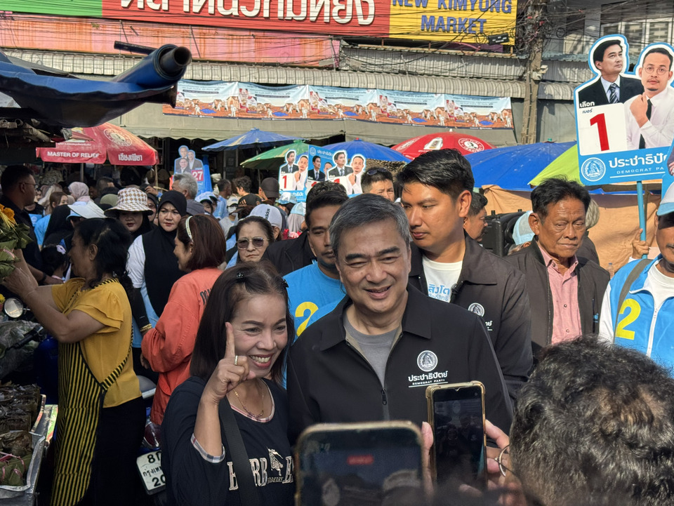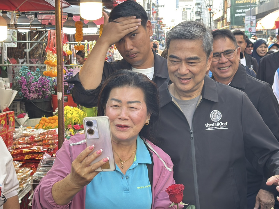 จากนั้น นายอภิสิทธิ์ ไปเดินตลาดกิมหยง ทันทีที่ถึงประชาชนแห่รุมล้อมขอถ่ายเซลฟี มอบดอกกุหลาบ คล้องพวงมาลัยดาวเรือง บรรยากาศเป็นไปอย่างคึกคัก เปิดเพลง“ปักษ์ใต้บ้านเรา” สร้างสีสันการหาเสียง เป็นอย่างดี