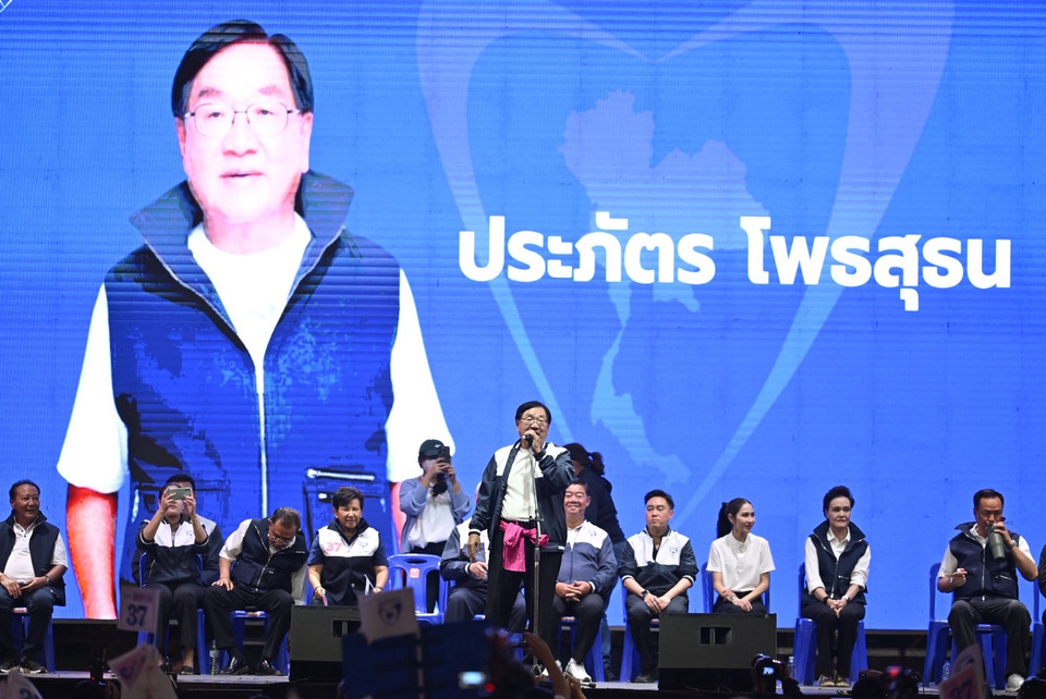 นายประภัตร โพธสุธน ผู้สมัคร สส.สุพรรณบุรี เขต 5 กล่าวปราศรัยว่า ตนเป็น สส.มาตั้งแต่ปี 18 อยู่กับชาวไร่ชาวนามาครึ่งศตวรรษ เราภาคภูมิใจไทยที่เรามีชีวิตเริ่มจะดี 2 ปีที่ผ่านมา เข้าปีที่ 3 เราอยู่กันอย่างปากกัดตีนถีบ ข้าวเหลือ 5 พันบาท แต่วันนี้ภายใน 3 เดือน เราได้พบกับคนเก่ง หญิงเก่งอย่างนางศุภจี ท่านทำให้ราคาข้าวขึ้นจาก 5 พันบาท มาเป็น 7.5 พันบาท เราต้องการอย่างน้อยต้องให้ถึงหมื่นบาท