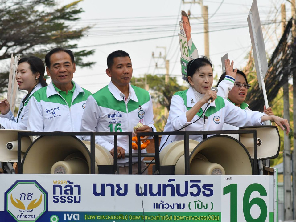 วันที่ 2 กุมภาพันธ์ 2569 พรรคกล้าธรรม (กธ.)โดยนางปวีณา หงสกุล ประธานที่ปรึกษาฝ่ายสังคม ในฐานะผู้สมัคร สส.บัญชีรายชื่อพรรคกล้าธรรม นำคณะลงพื้นที่หาเสียงช่วยผู้สมัคร สส.กทม.พรรคกล้าธรรม เขต 11 พื้นที่สายไหม นายธีระเดช นาซีก เบอร์ 8 และ นายนนท์ปวิธ แก้วงาม เบอร์ 16 เขต 12 พื้นที่ ออเงิน ท่าแร้ง และจรเข้บัว
