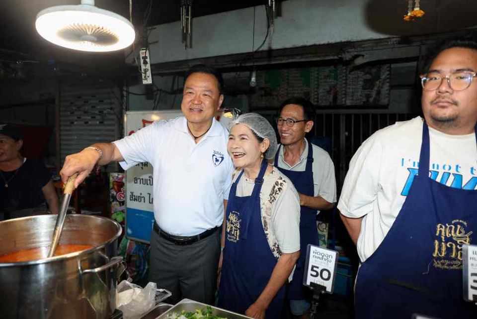 โดยนายอนุทิน เดินทักทายพ่อค้า แม่ค้าที่ขายของในตลาด และประชาชนที่มาจับจ่ายซื้อของในช่วงเช้า ซึ่งมีประชาชนดึงมือนายอนุทินไปดูลายมือ พร้อมบอกว่า “อนาคตจะได้เป็นนายกฯไหม“