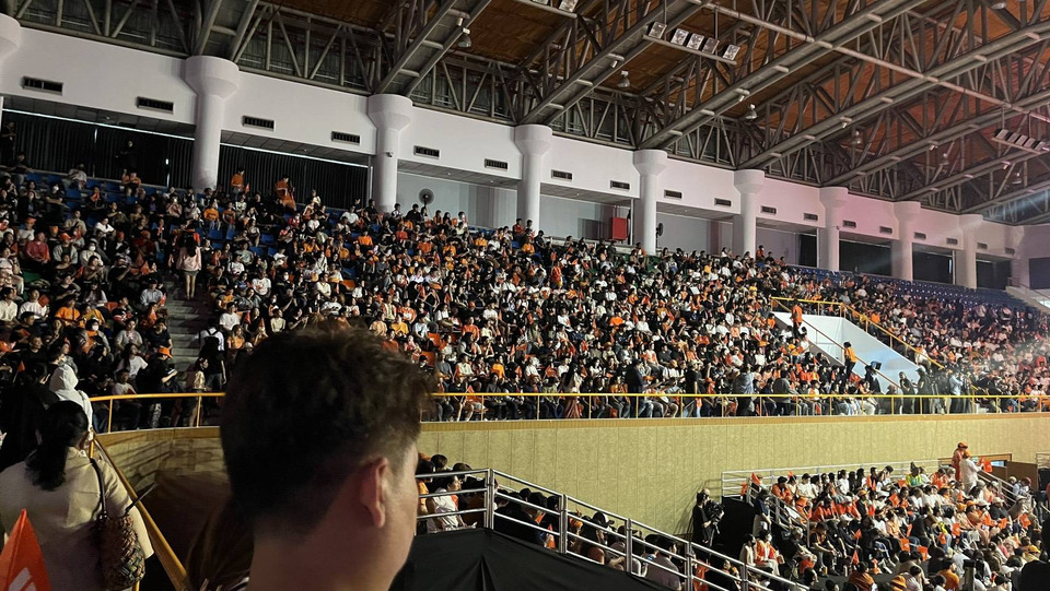เมื่อวันที่ 6 ก.พ. ที่อาคารกีฬาเวสน์ 1 ศูนย์กีฬาไทย-ญี่ปุ่น ดินแดง ผู้สื่อข่าวรายงานบรรยากาศเวทีปราศรัยใหญ่ครั้งสุดท้าย “ประชาชนเปลี่ยนประเทศ” ของพรรคประชาชน ซึ่งนำโดยนายณัฐพงษ์ เรืองปัญญาวุฒิ หัวหน้าพรรคและแคนดิเดตนายกรัฐมนตรี พรรคประชาชน ว่า มีประชาชนมารอเข้าอาคารตั้งแต่ช่วงเช้า เวลา 08.00 น. ส่วนใหญ่ใส่เสื้อสีส้ม สวมหมวกสีส้ม บางคนได้เขียนป้ายให้กำลังใจแกนนำพรรค โดยเฉพาะนายณัฐพงษ์ และมีการนำธงสีส้มมาโบกด้วย