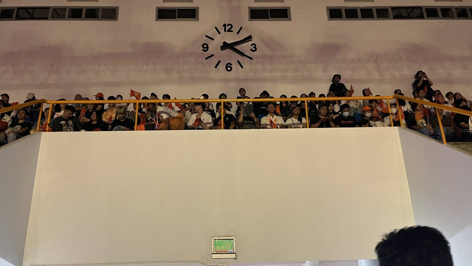 โดยเวลา 14.00 น. เจ้าหน้าที่ได้เปิดให้แฟนคลับที่มารอเข้ามา ซึ่งประชาชนผู้สนับสนุนพรรคได้วิ่งกรูเข้ามาอย่างล้นหลาม หยิบเบาะที่นั่งมาจับจองพื้นที่รอบๆเวทีจนแน่น