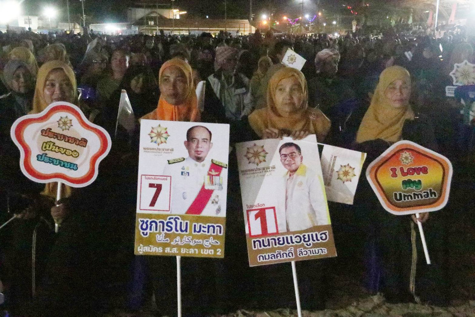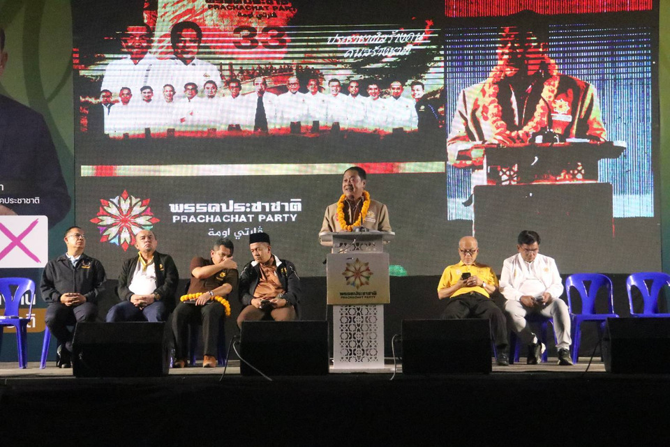 นำโดย พ.ต.อ.ทวี สอดส่อง หัวหน้าพรรค และ นายวันมูหะมัดนอร์ มะทา ประธานที่ปรึกษาพรรค เพื่อช่วยหาเสียงให้กับ นายซูการ์โน มะทา ผู้สมัคร ส.ส. ยะลา เขต 2 และ นายกมลศักดิ์ ลีวาเมาะ ผู้สมัคร ส.ส. นราธิวาส เขต 5 ท่ามกลางมวลชนที่มาร่วมฟังนโยบายอย่างเนืองแน่น