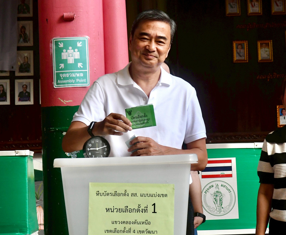 ขณะที่ นายอภิสิทธิ์ เวชขาชีวะ แคนดิเดตนายกรัฐมนตรี และหัวหน้าพรรคประชาธิปัตย์ ลงคะแนนเสียง ที่โรงเรียนสวัสดีวิทยา ถนนสุขุมวิท 31 แขวงคลองเตยเหนือ เขตวัฒนา กรุงเทพมหานคร 10110