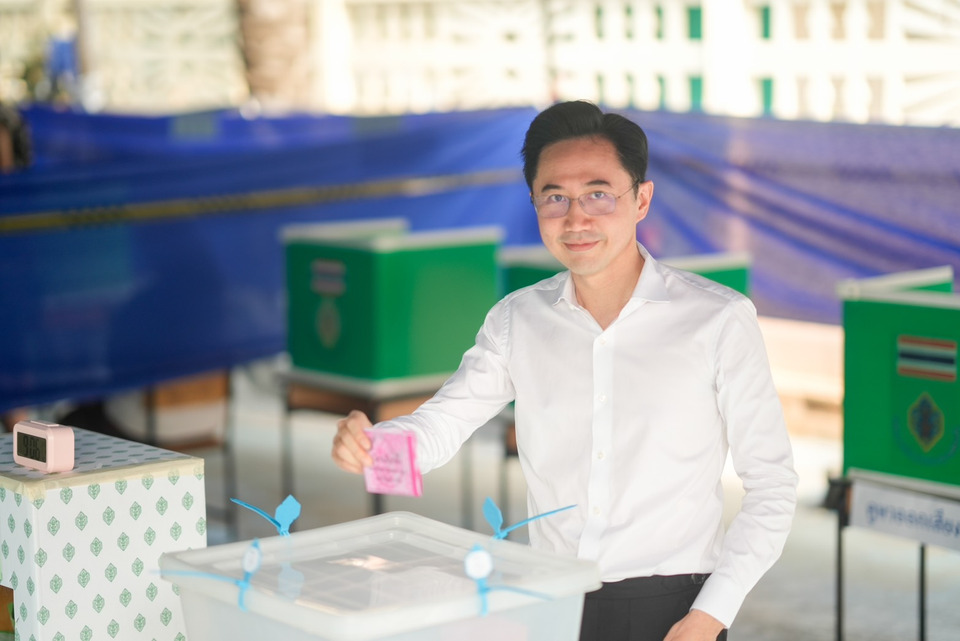ศ.ดร.สุชัชวีร์ สุวรรณสวัสดิ์ หัวหน้าพรรคไทยก้าวใหม่ และแคนดิเดตนายกรัฐมนตรี เดินทางมาใช้สิทธิ์เลือกตั้งที่หน่วยเลือกตั้งโรงเรียนลำสาลี (ราษฎร์บำรุง) ถนนศรีนครินทร์-ร่มเกล้า แขวงหัวหมาก เขตบางกะปิ กรุงเทพมหานคร พร้อมด้วยครอบครัว