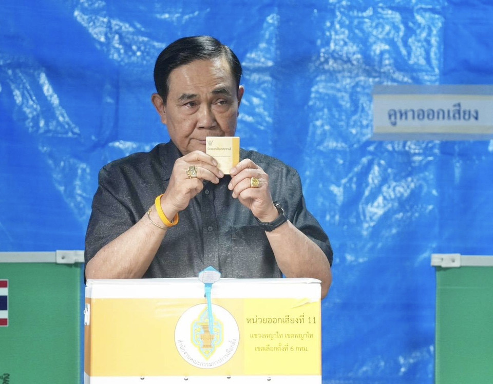 ขณะที่ พลเอกประยุทธ์ จันทร์โอชา องคมนตรี และอดีตนายกรัฐมนตรี เดินทางมาใช้สิทธิเลือกตั้งและออกเสียงประชามติ ที่หน่วยเลือกตั้งที่ 11 แขวงพญาไท กรุงเทพมหานคร บริเวณเต็นท์ใต้ทางด่วนซอยประดิพัทธ์ 5