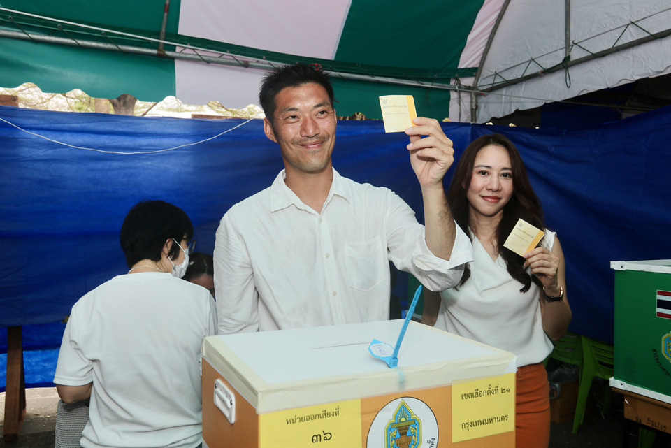 เมื่อวันที่ 8 ก.พ. 69 ที่มหาวิทยาลัยรามคำแหง วิทยาเขตบางนา นายธนาธร จึงรุ่งเรืองกิจ ประธานคณะก้าวหน้า พร้อมภรรยาและบุตรชายคนเล็ก มาใช้สิทธิ์เลือกตั้งและออกเสียงประชามติ ในเวลา 11.46 น.