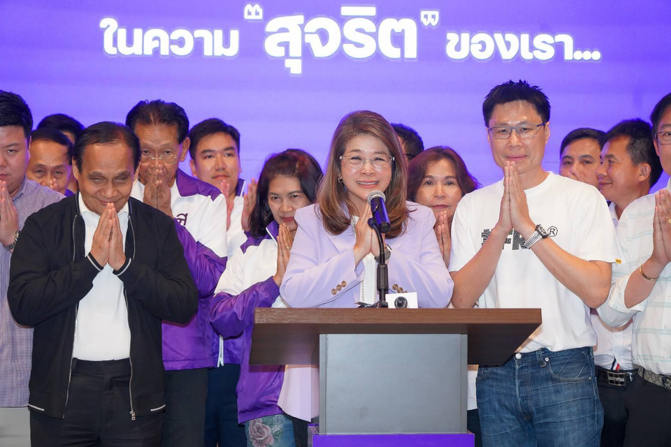 วันที่ 8 ก.พ.69 คุณหญิงสุดารัตน์ เกยุราพันธุ์ หัวหน้าพรรคไทยสร้างไทย นำทีมแถลงข่าวขอบคุณพี่น้องประชาชนทั่วประเทศที่มอบคะแนนเสียงไว้วางใจให้ทั้งในระบบแบ่งเขตและบัญชีรายชื่อ โดยยืนยันว่าทุกคะแนนคือพลังสำคัญที่จะขับเคลื่อนพรรคให้เดินหน้าทำงานเพื่อประโยชน์ของประชาชนตามอุดมการณ์การเมืองสุจริตที่ตั้งไว้ พร้อมเน้นย้ำความต้องการเห็นประเทศไทยดีขึ้นด้วยการสร้างโอกาสให้คนตัวเล็กและคนรุ่นใหม่ได้มีที่ยืนในสังคมอย่างมั่นคง