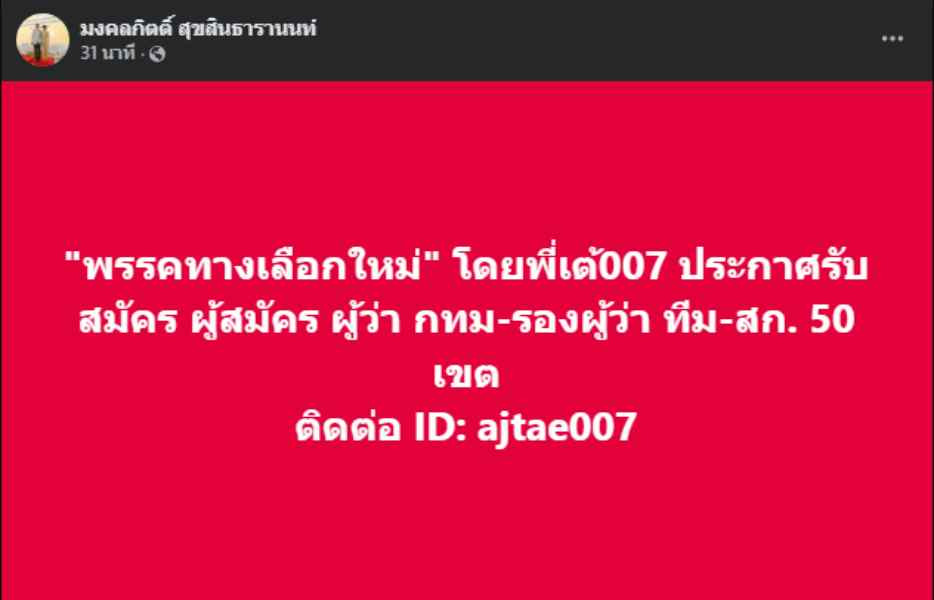 #เต้มงคลกิตติ์ #พี่เต้007 #พรรคทางเลือกใหม่ #ผู้ว่ากทม #สก #การเมืองท้องถิ่น #เลือกตั้งท้องถิ่น