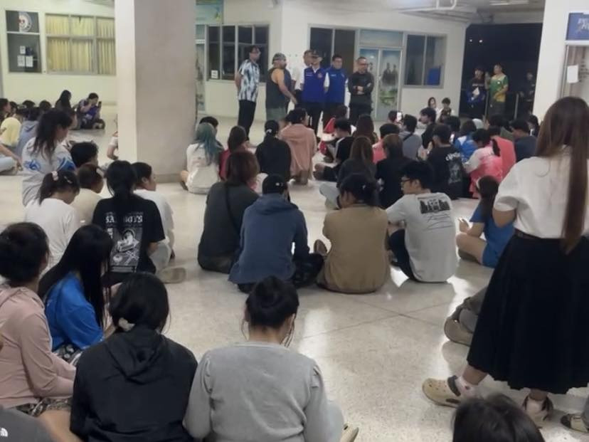สถานการณ์ยังคงตึงเครียด กลุ่มผู้ชุมนุมปักหลักรอความชัดเจน ขณะที่ตำรวจตรึงกำลังดูแลความปลอดภัยรอบหอประชุม มรภ.มหาสารคาม เพื่อป้องกันเหตุบานปลาย